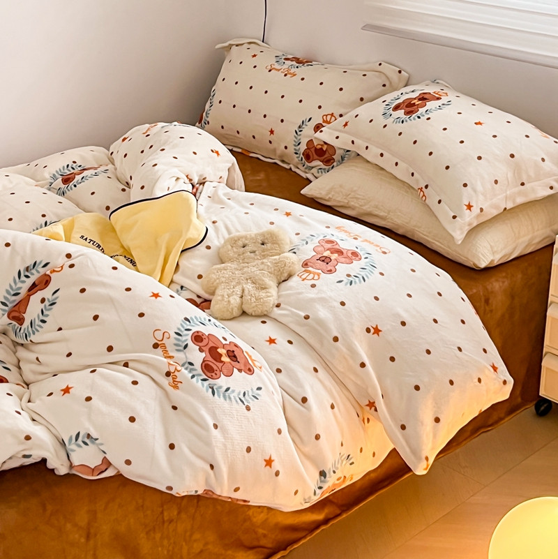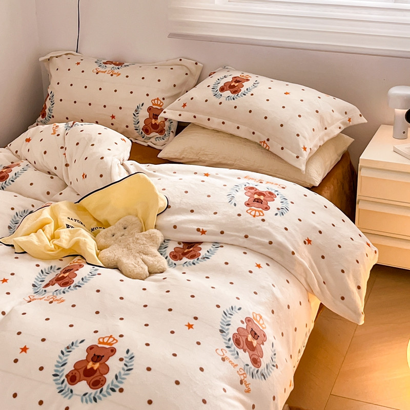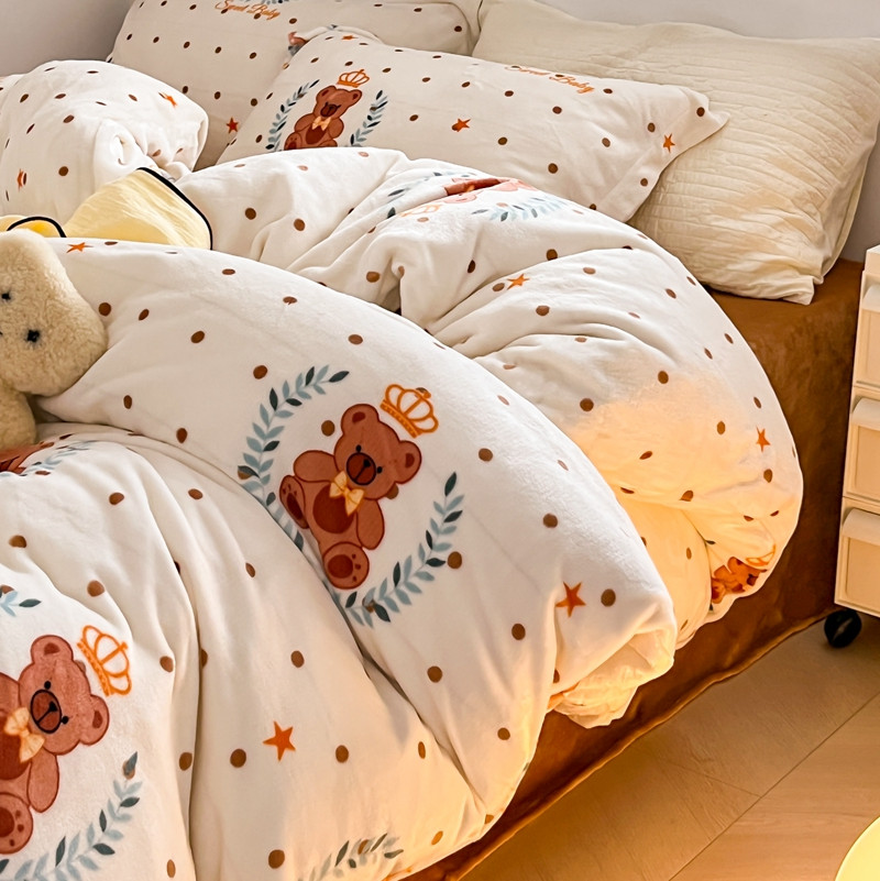 商品名称:顾里 2022新款ins少女保暖牛奶绒套件 场景一 皇冠咖熊