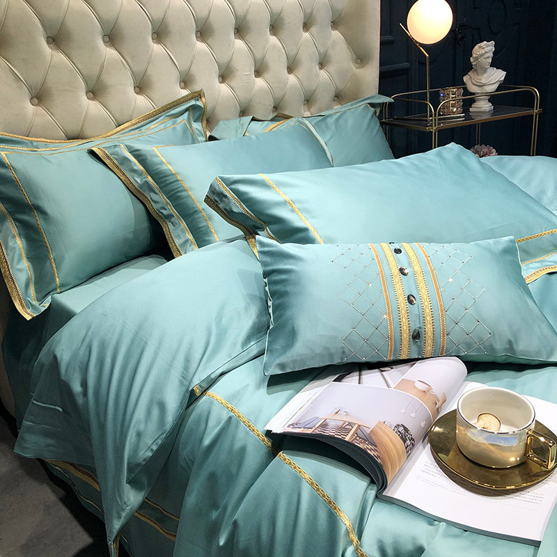 商品名称:馨蕊 2022新款100支莫兰迪刺绣全棉四件套 豆绿