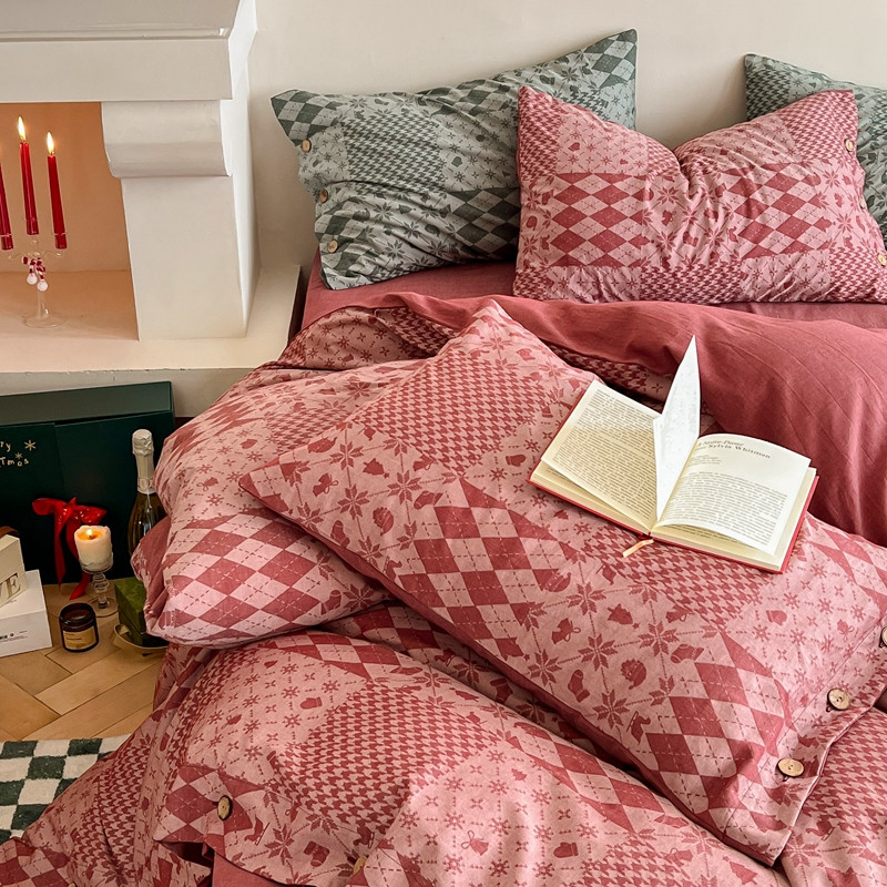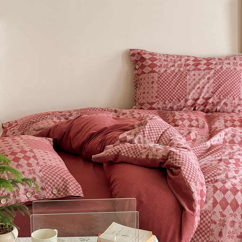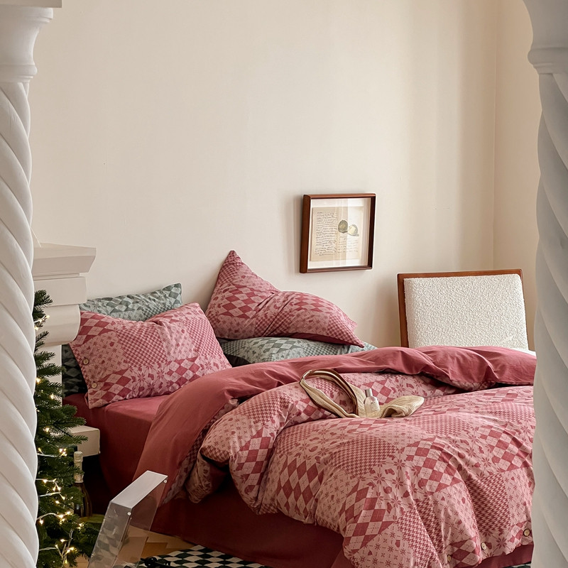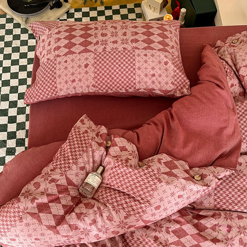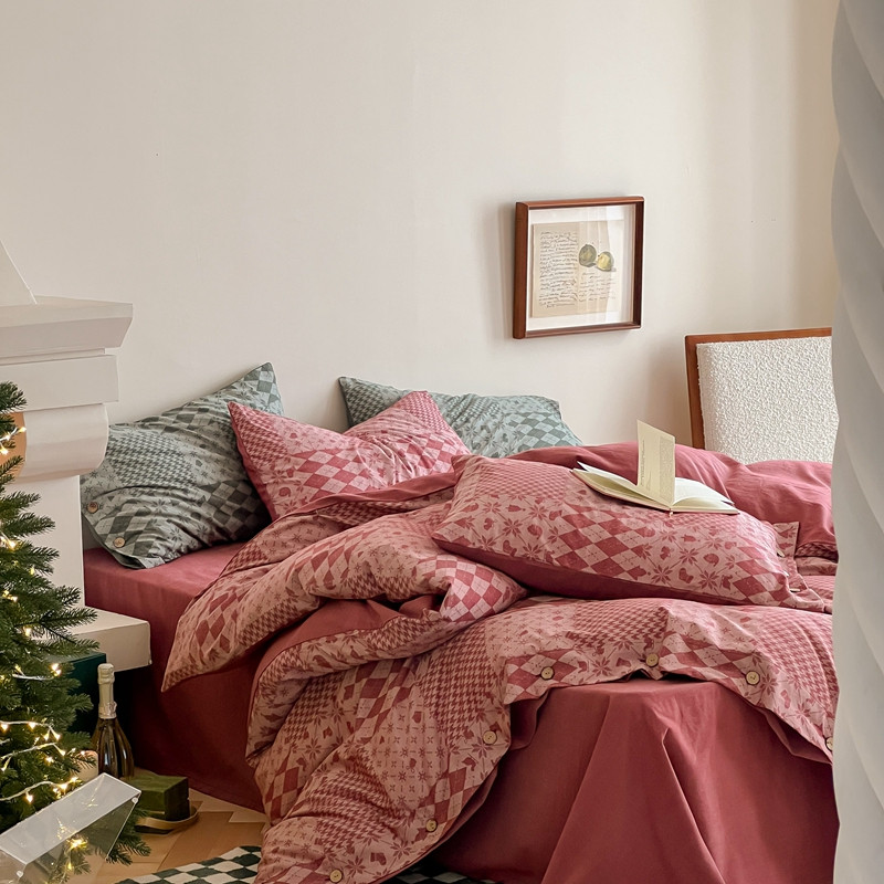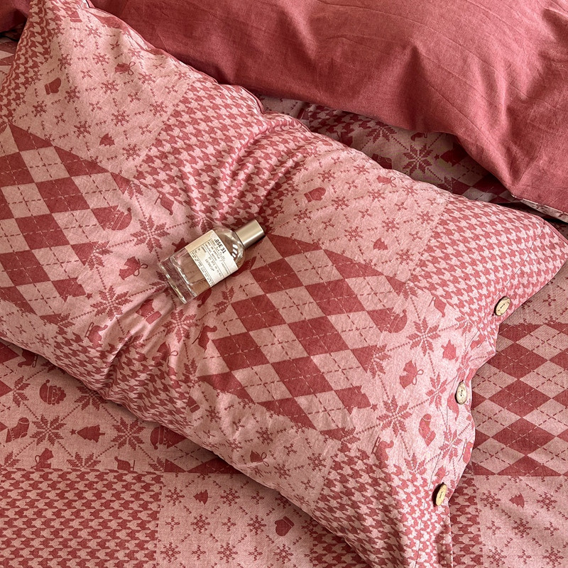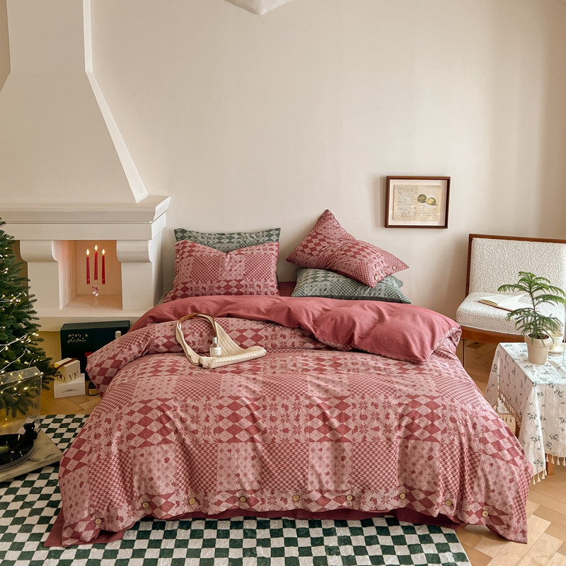 (总)华超针织 2021新款天竺棉千鸟格四件套,千鸟格豆沙,千鸟格海蓝,千鸟格姜黄,千鸟格墨绿,千鸟格藕色,千鸟格炭黑