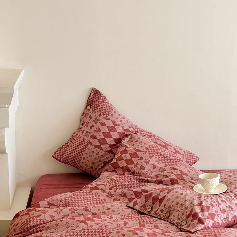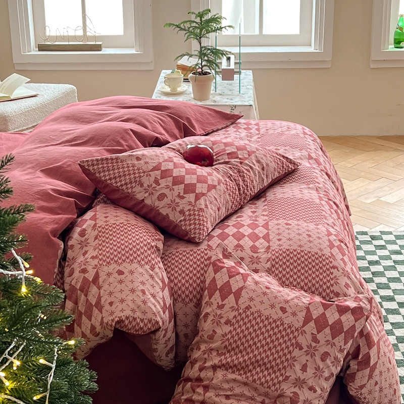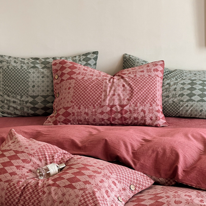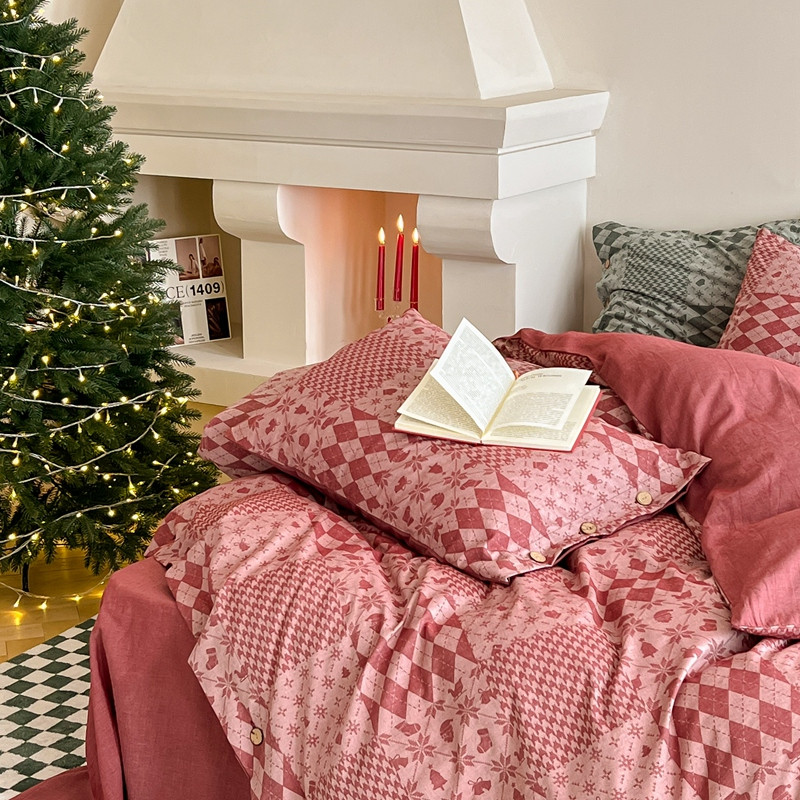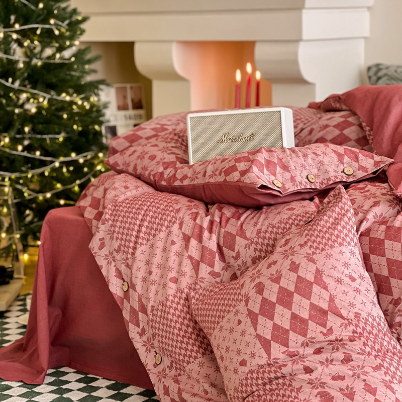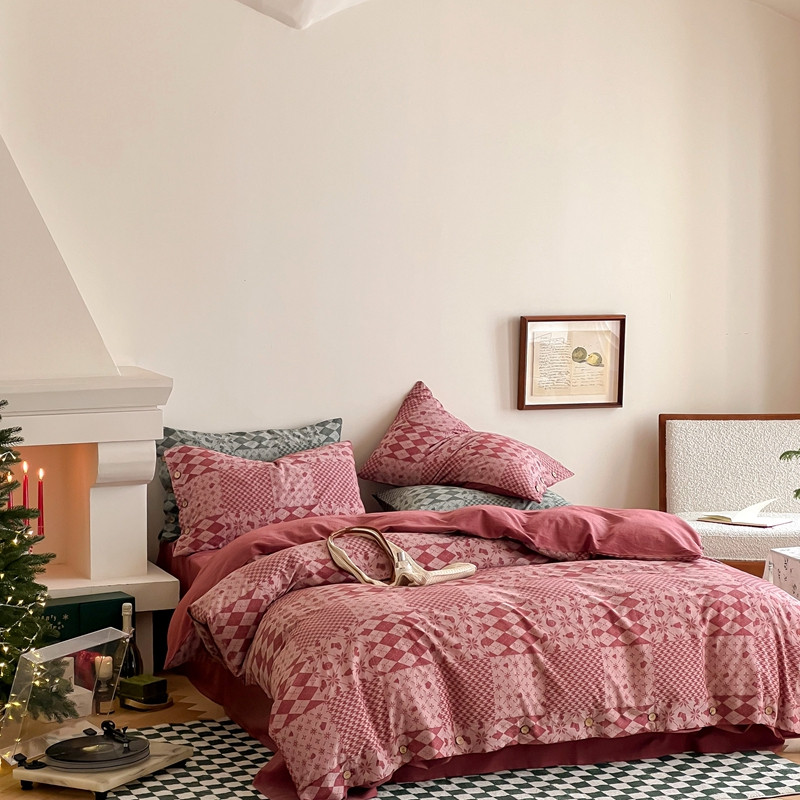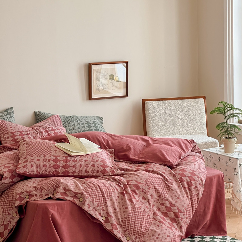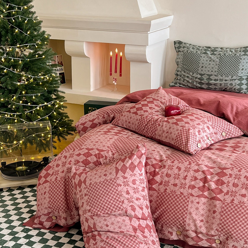 (总)华超针织 2021新款天竺棉千鸟格四件套,千鸟格豆沙,千鸟格海蓝,千鸟格姜黄,千鸟格墨绿,千鸟格藕色,千鸟格炭黑