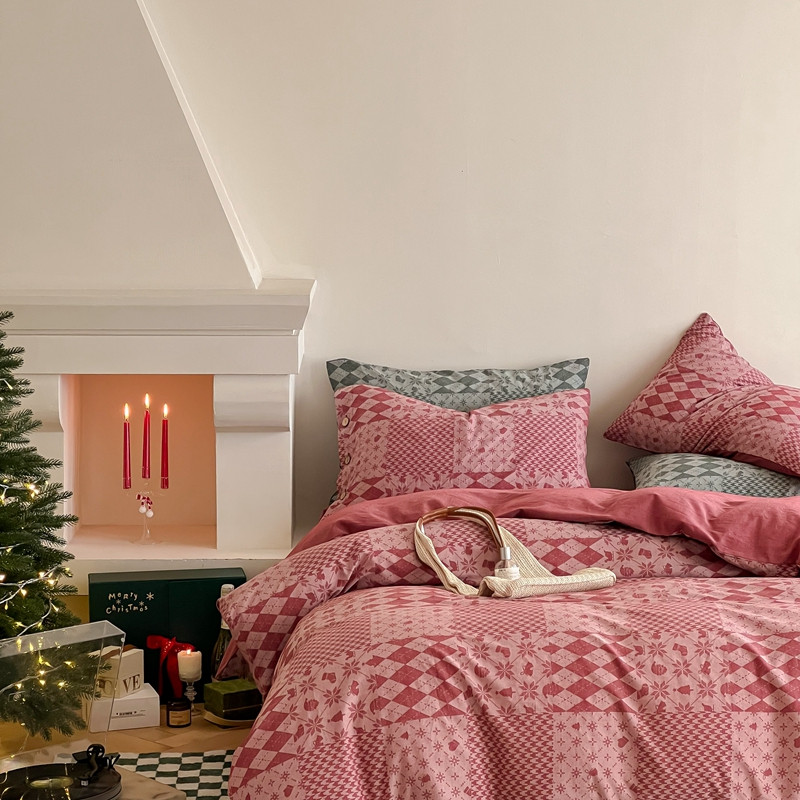 (总)华超针织 2021新款天竺棉魔方格四件套,魔方格姜黄,魔方格奶茶,魔方格南瓜,魔方格深灰,魔方格紫粉