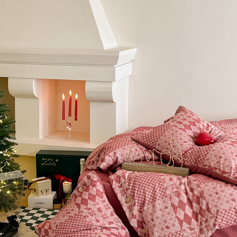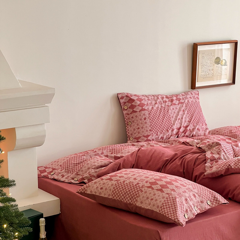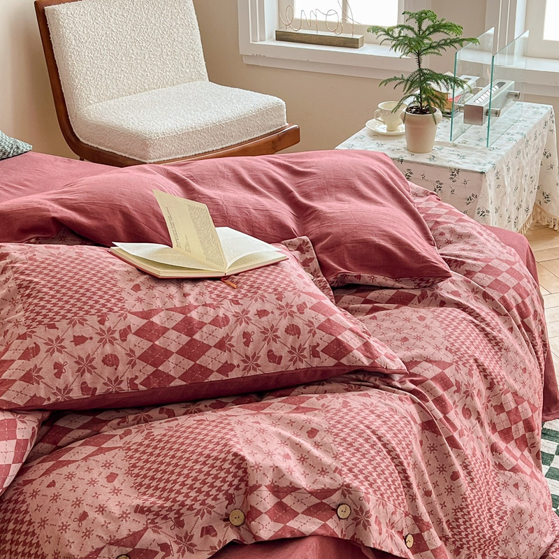 (总)华超针织 2025新款亲肤舒适全棉纯棉针织五件套四件套,奶糖+樱桃,杏粉+花田,杏灰+玫瑰