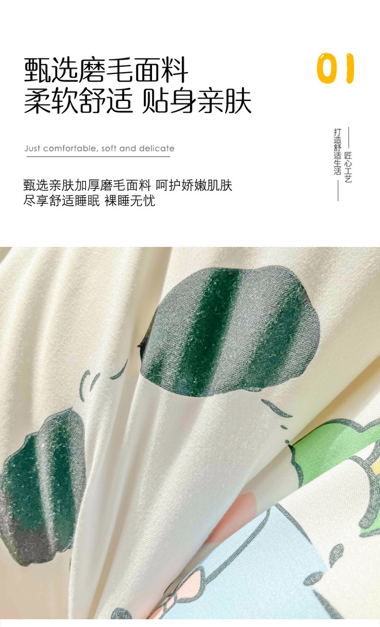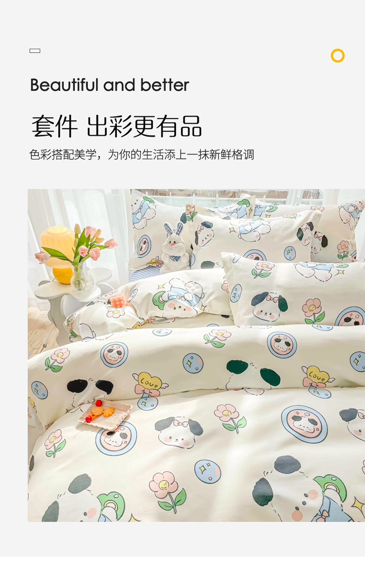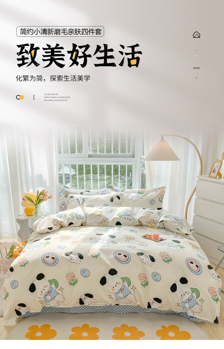 商品名称:花伞家居 2022直播网销斜纹加厚磨毛印花植物羊绒四件套胖胖狗