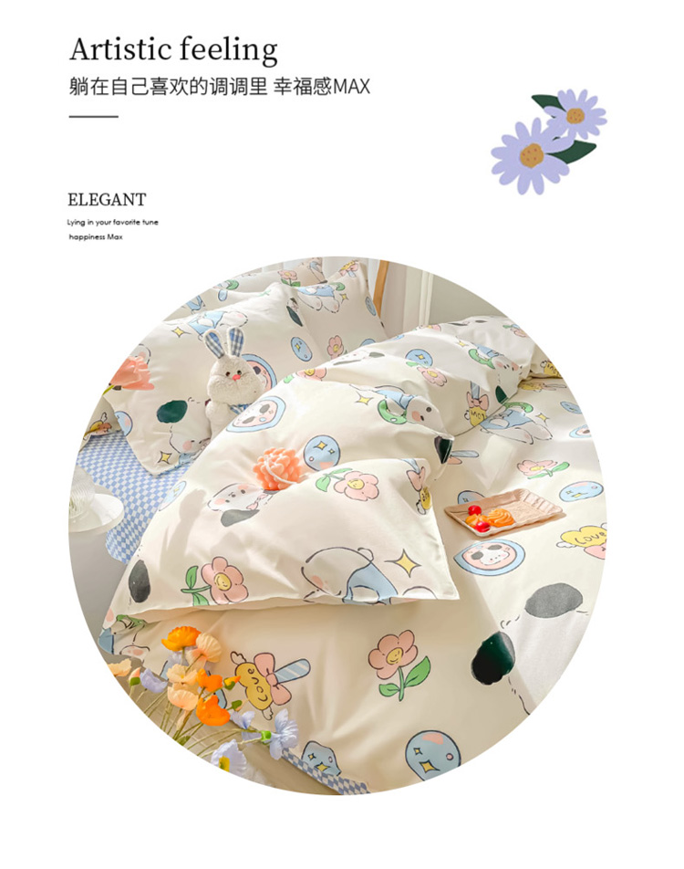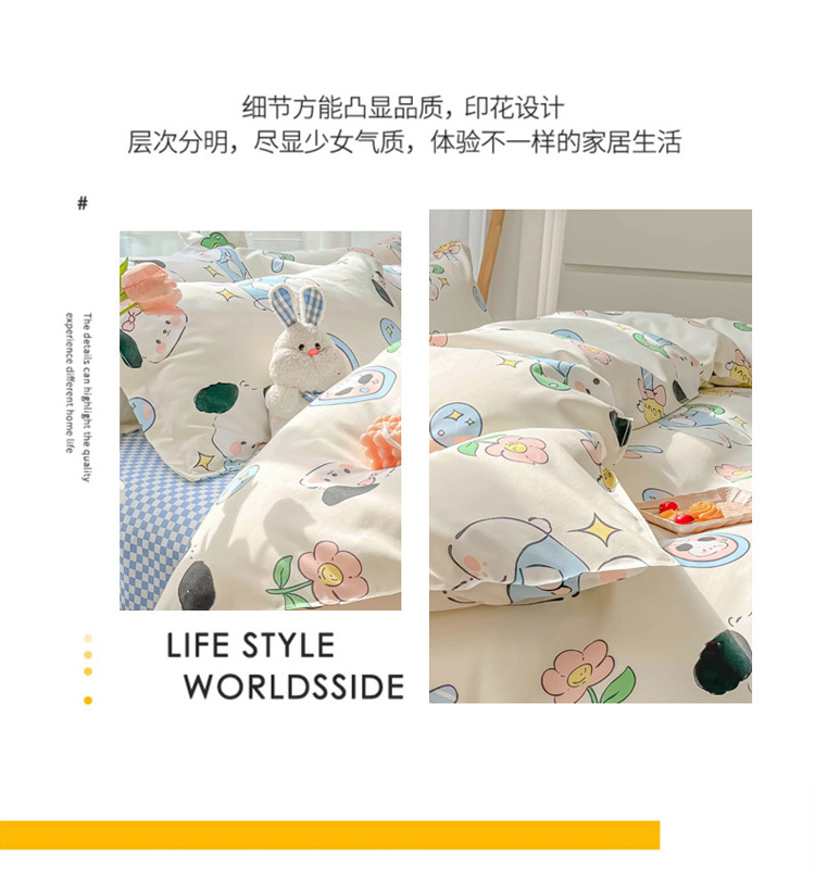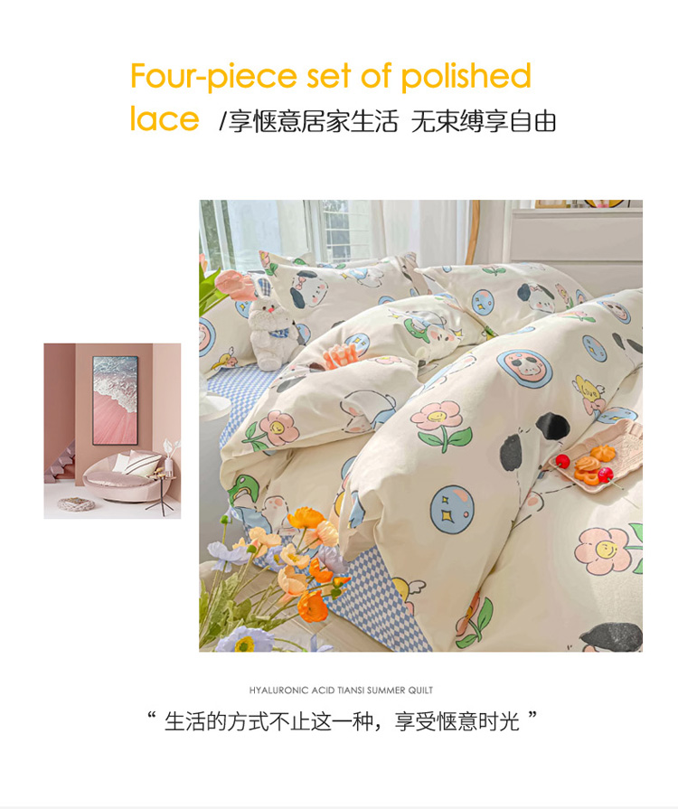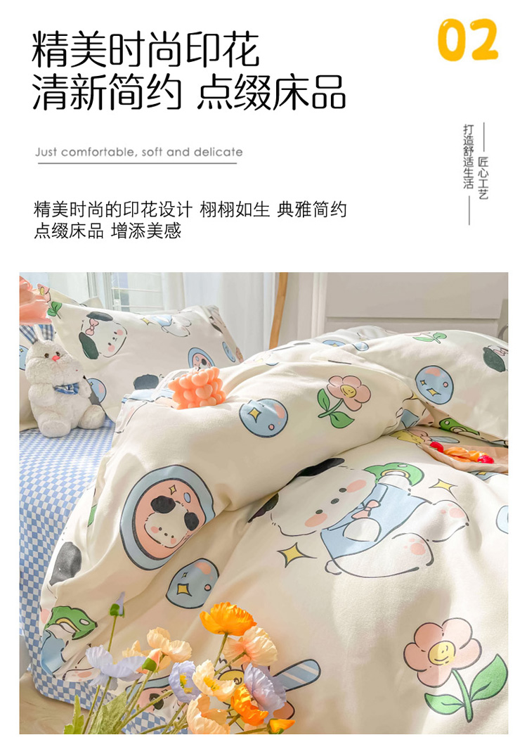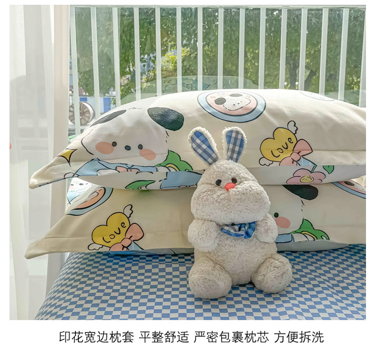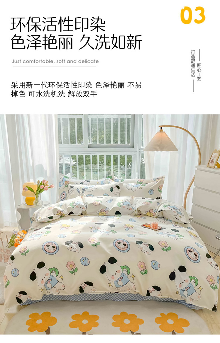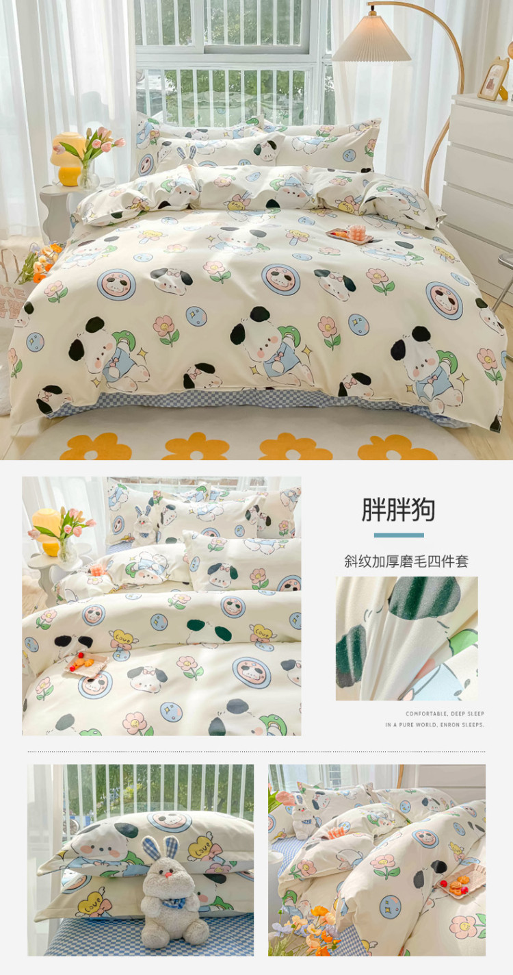 花伞家居 2022直播网销斜纹加厚磨毛印花植物羊绒四件套胖胖狗