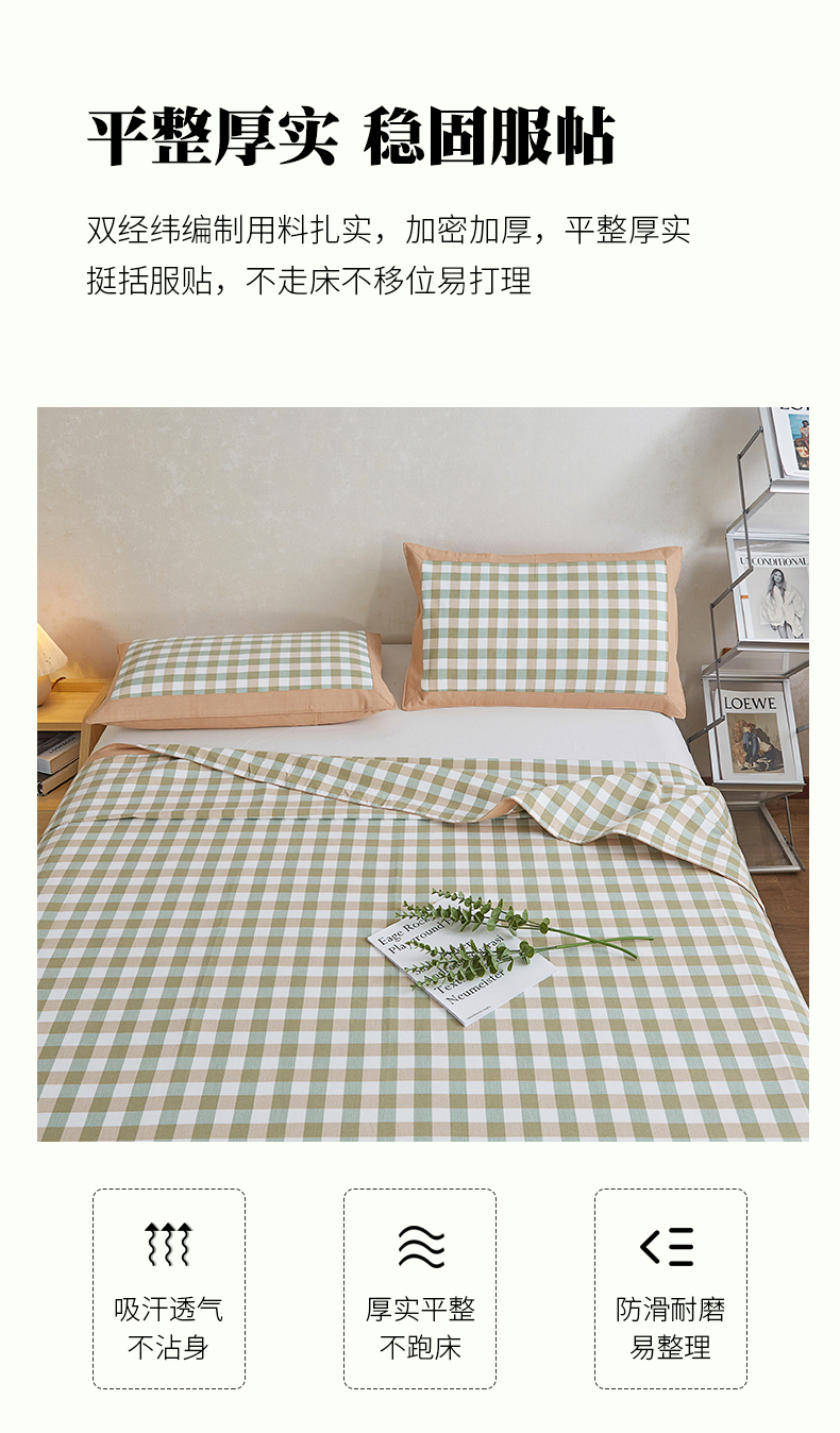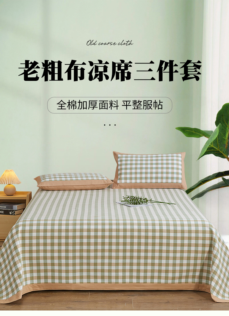 (总)首爱 2025新款全棉加厚宽边老粗布凉席三件套