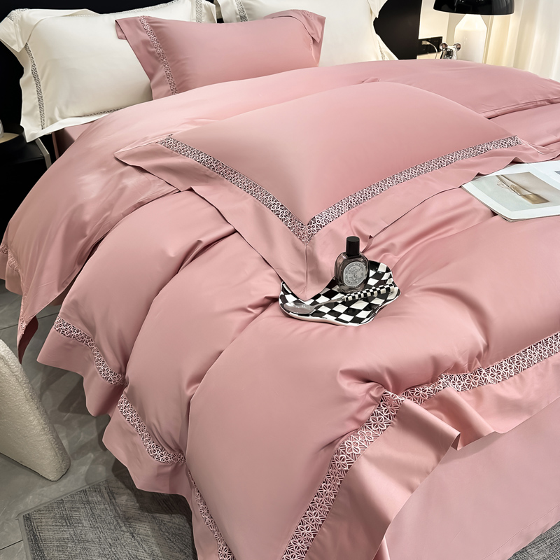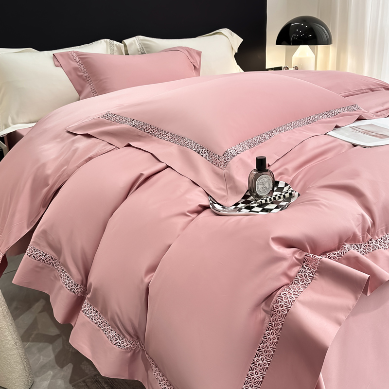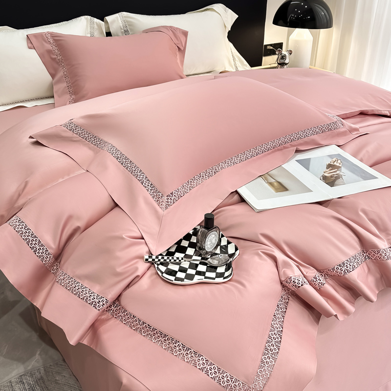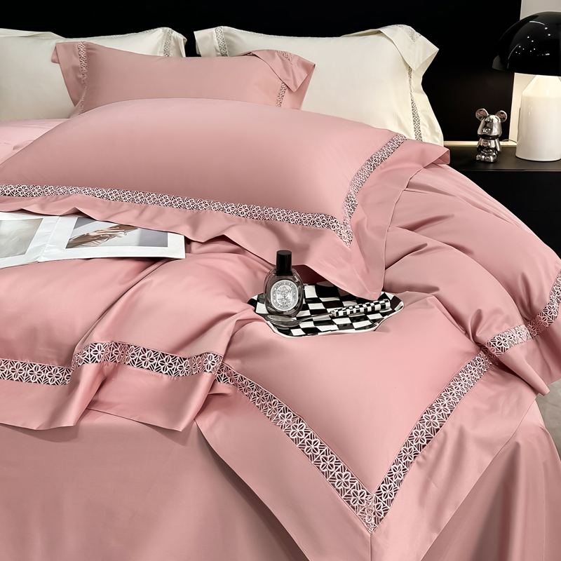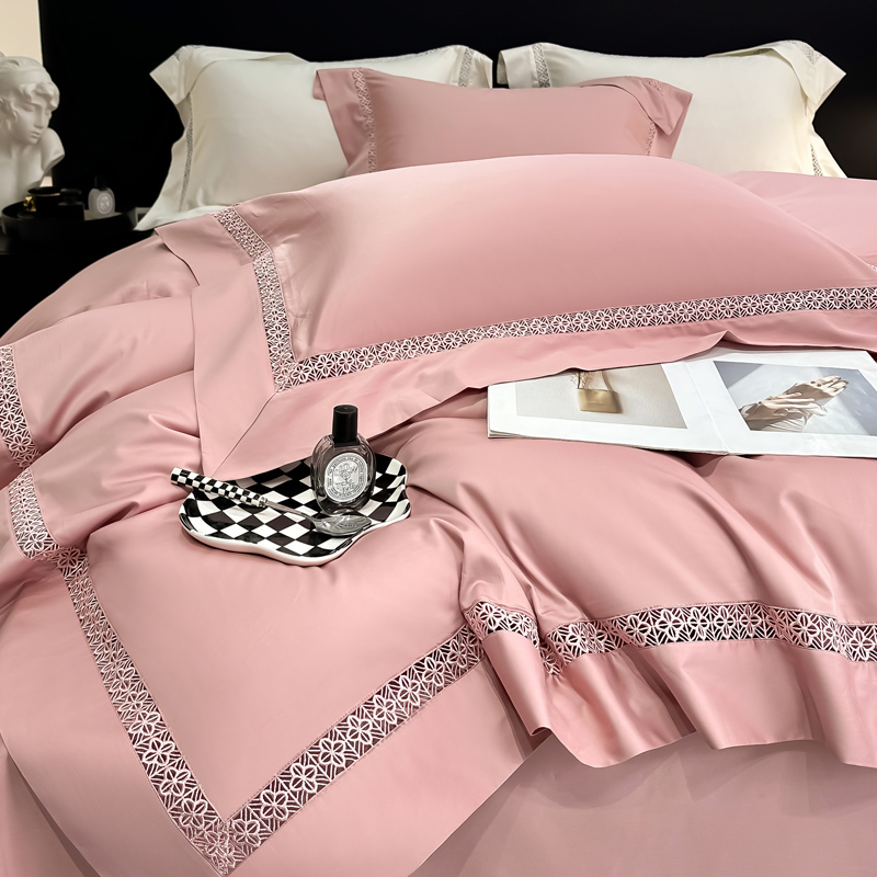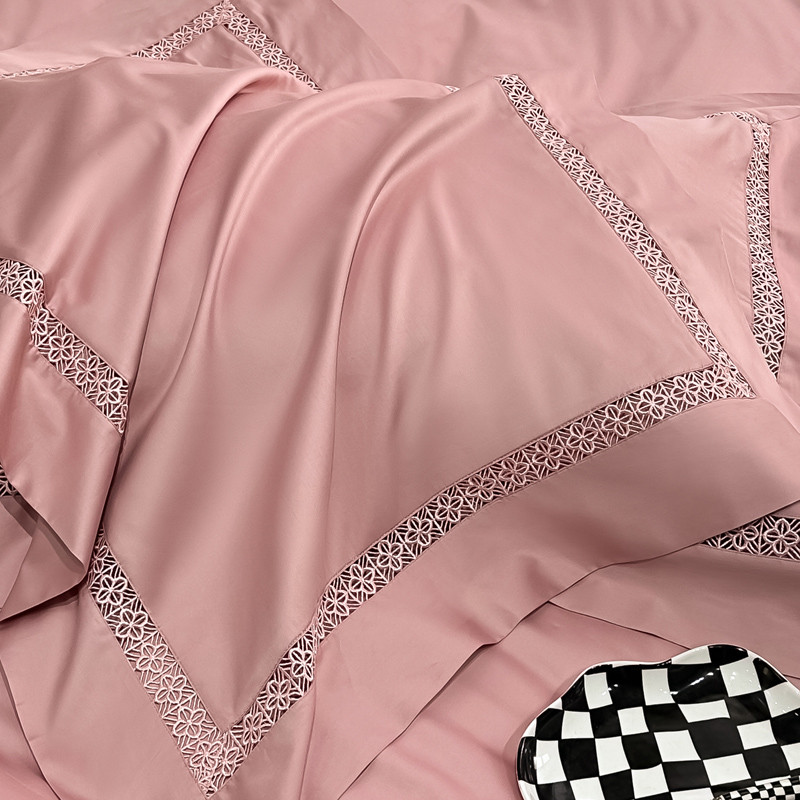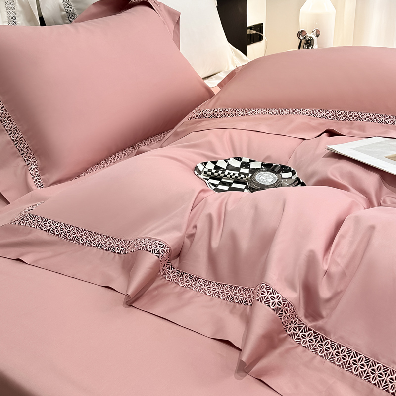 若未 2023新款50支长绒棉镂空轻奢四件套-奢梵克 粉豆沙