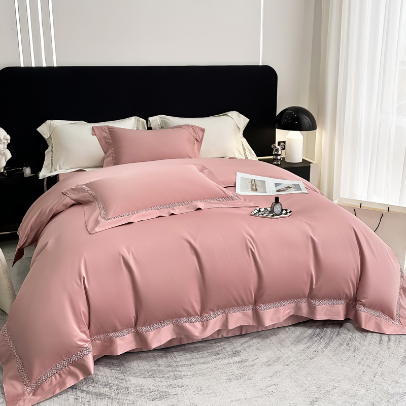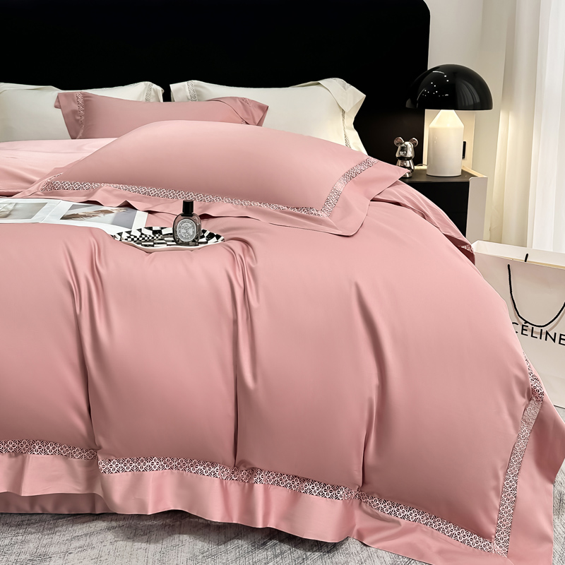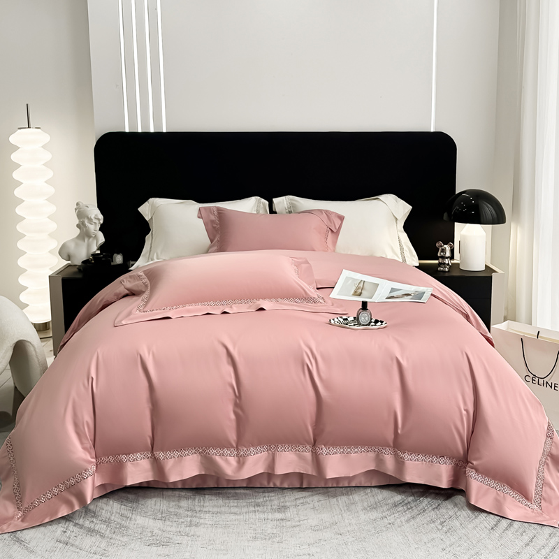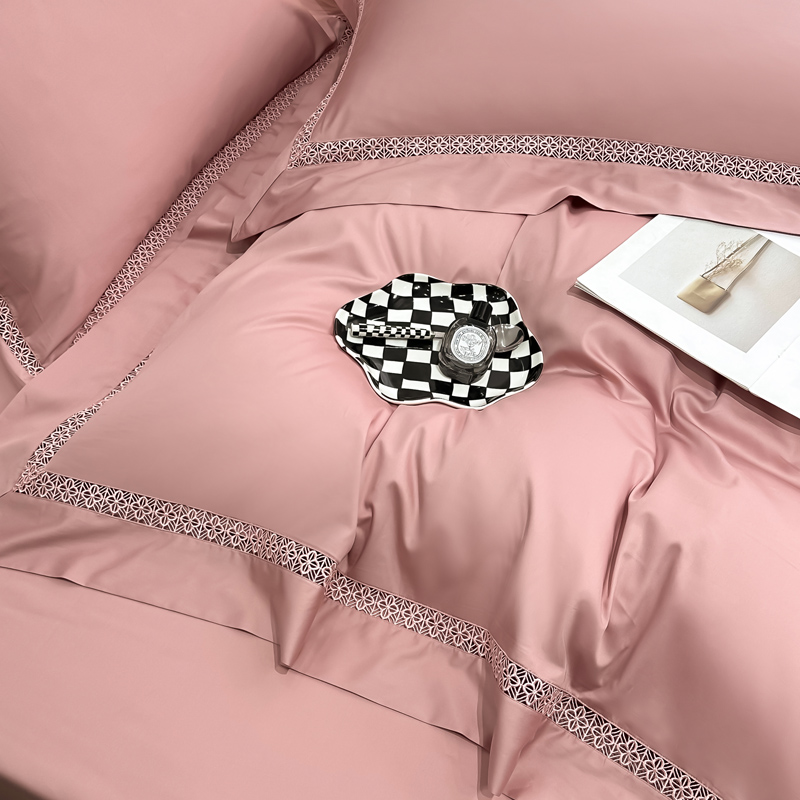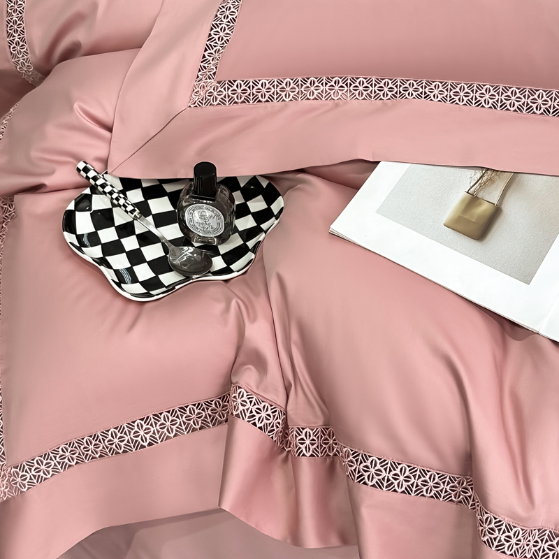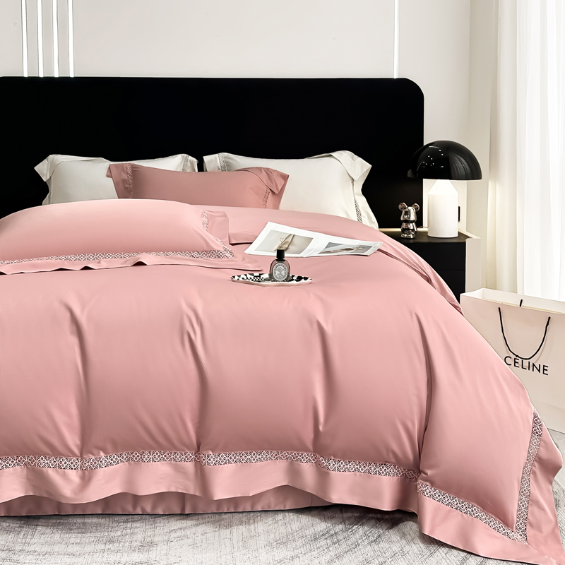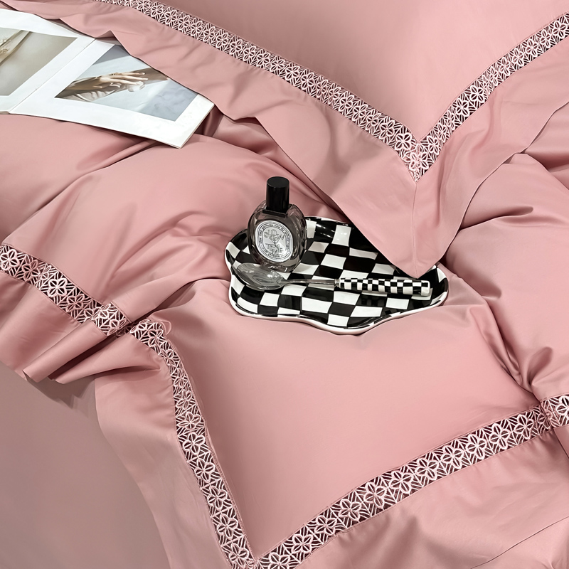 若未 2023新款50支长绒棉镂空轻奢四件套-奢梵克 粉豆沙
