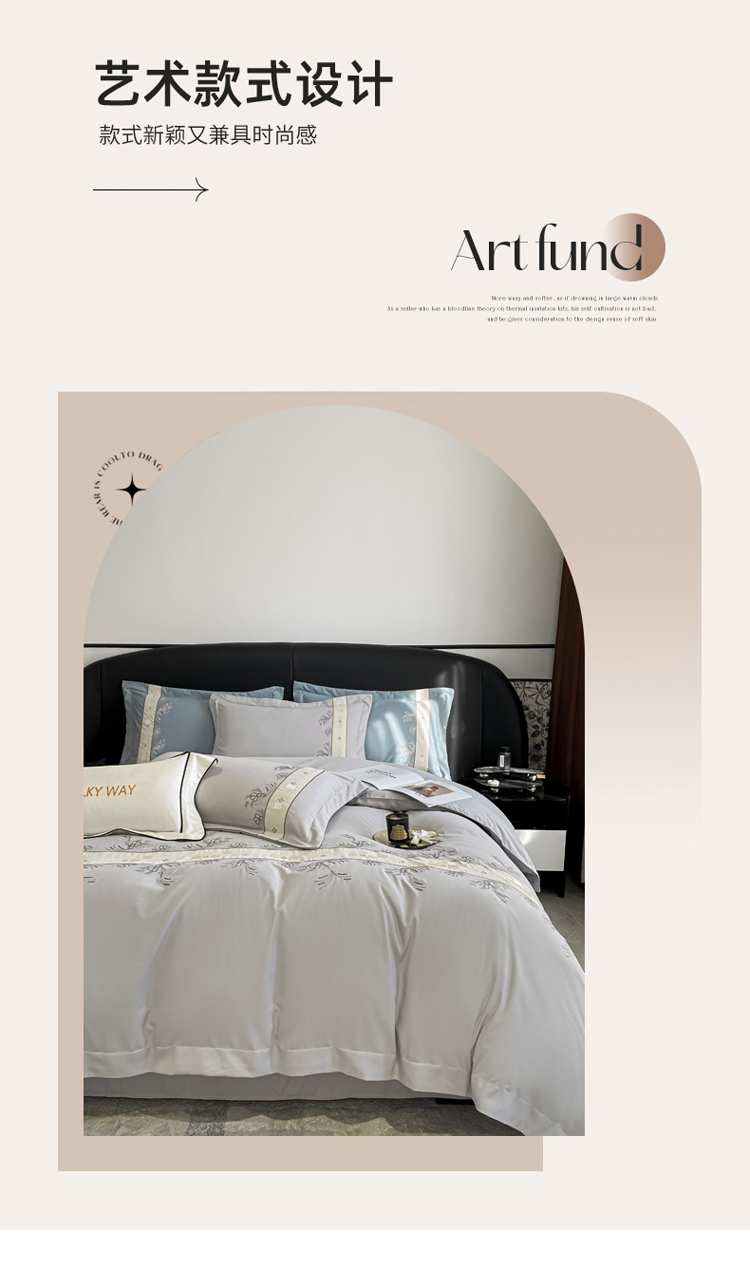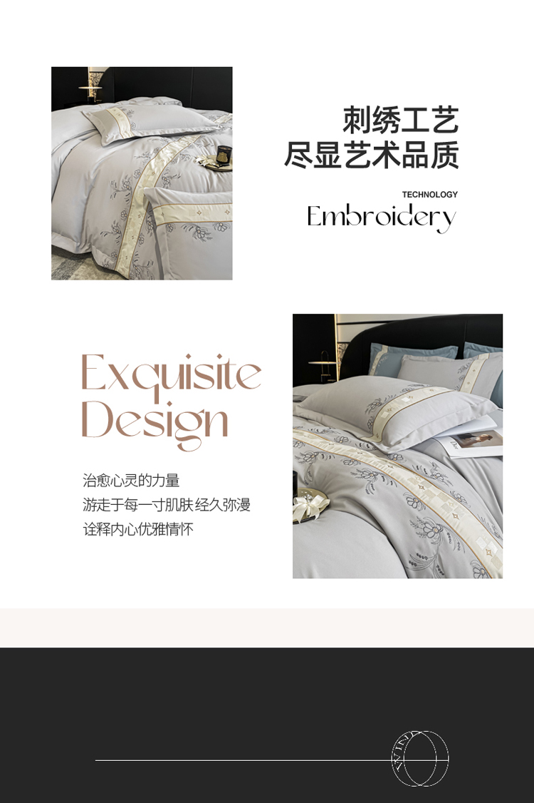 绒世界 2024新款秋冬保暖锦绣棉简约绣花艾莎系列四件套 艾莎-浅灰