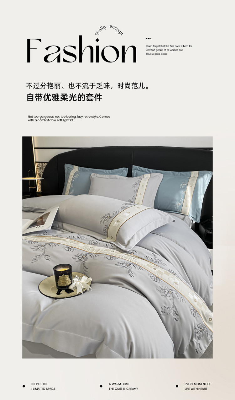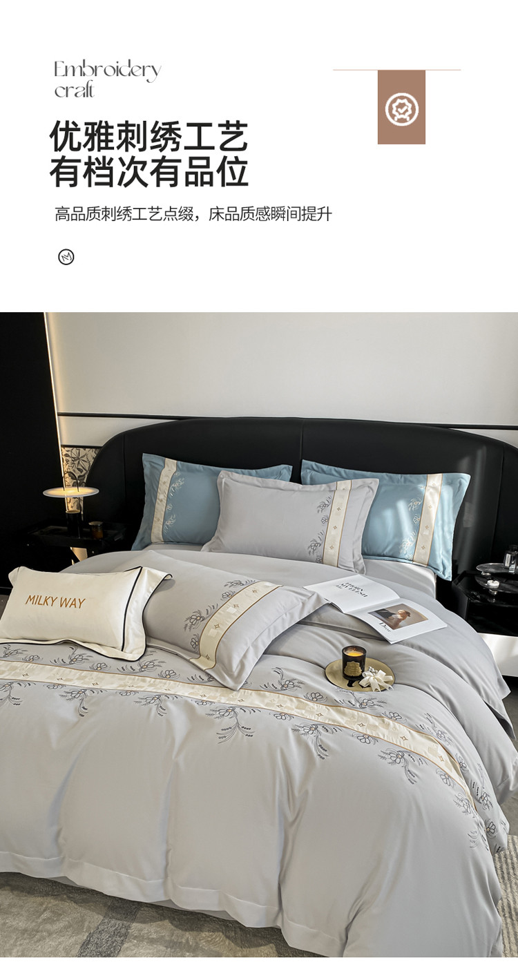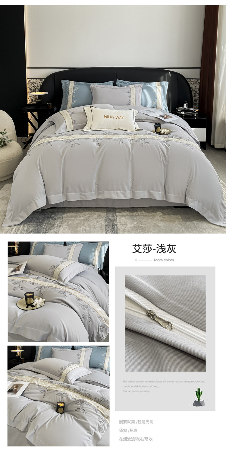 商品名称:绒世界 2024新款秋冬保暖锦绣棉简约绣花艾莎系列四件套 艾莎-浅灰