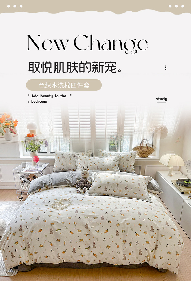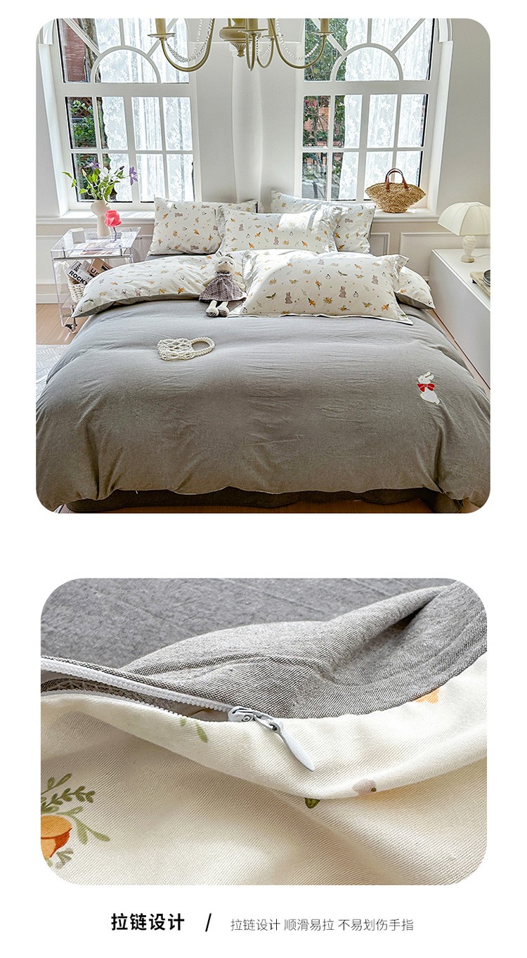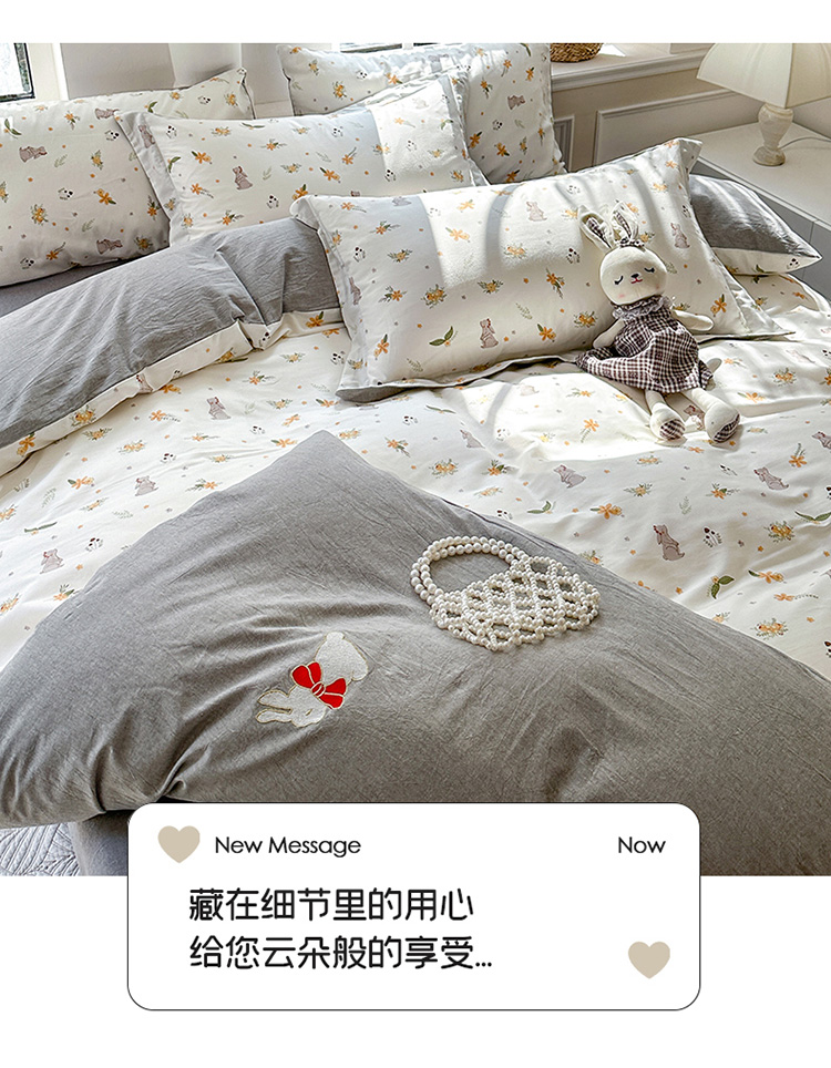 商品名称:嘉汀兰 2023新款被套AB两用全棉水洗棉印花绣花四件套 恬淡生活