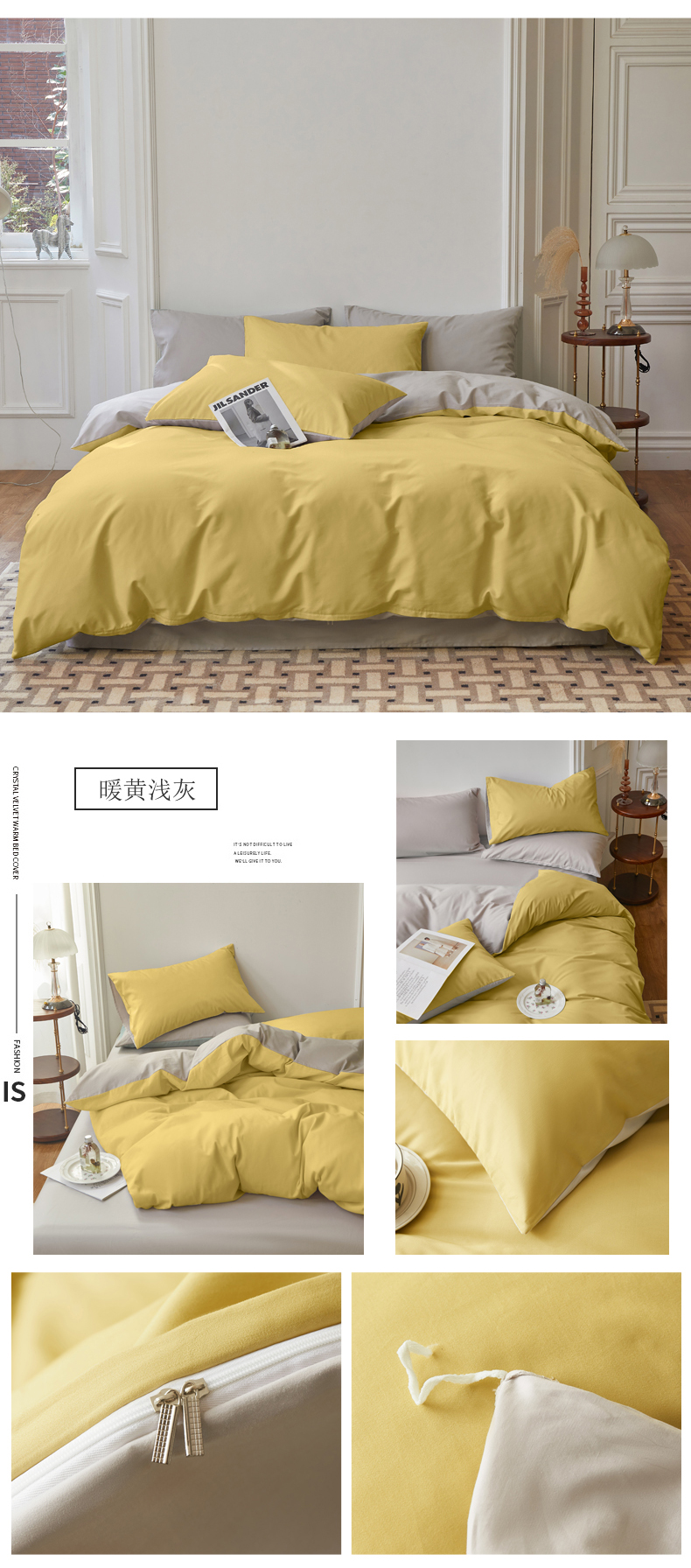 怡家居 2023新款全棉100支磨毛四件套 暖黄浅灰