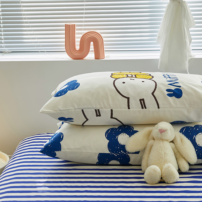 (总)怡家居 2025新款全棉纯棉磨毛绣花四件套-普通款,布丁狗,彩虹狗狗,魔法喵,七彩小熊,条纹小兔