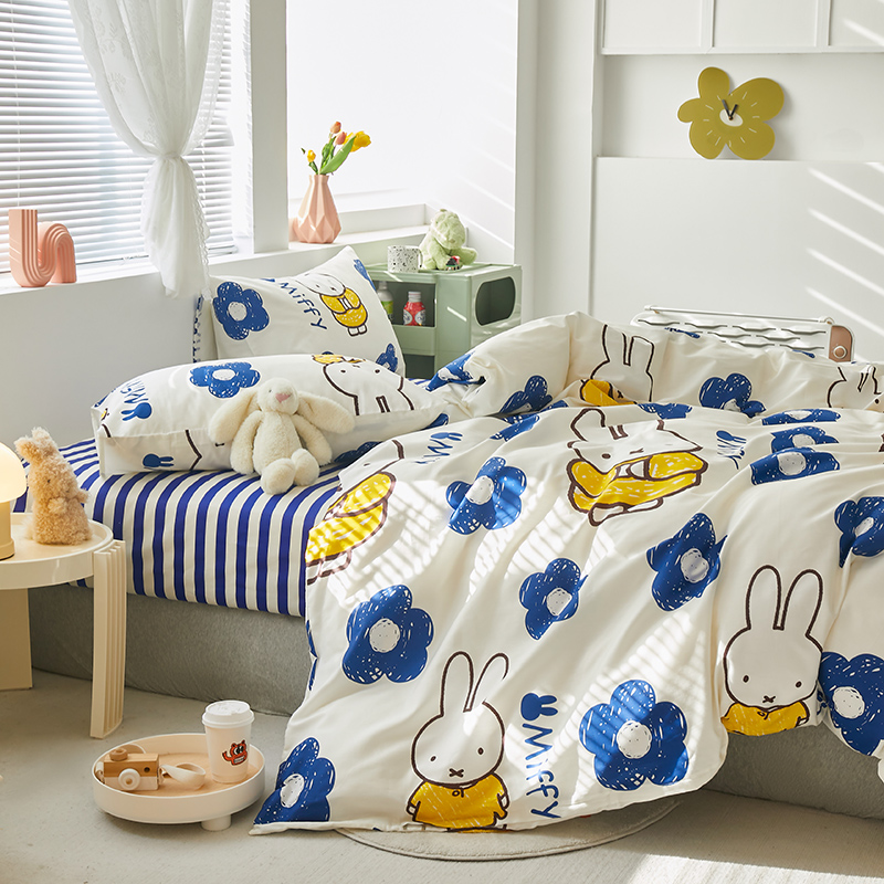 怡家居 2023新款全棉米菲兔四件套 花朵米菲