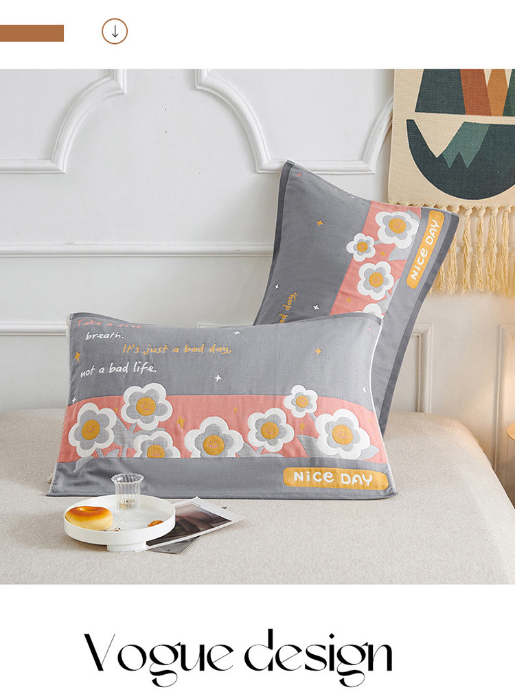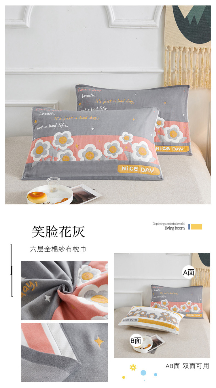棠薇 2023新款全棉6层纱布枕巾53*80cm/对-花卉系列 6层 笑脸花灰