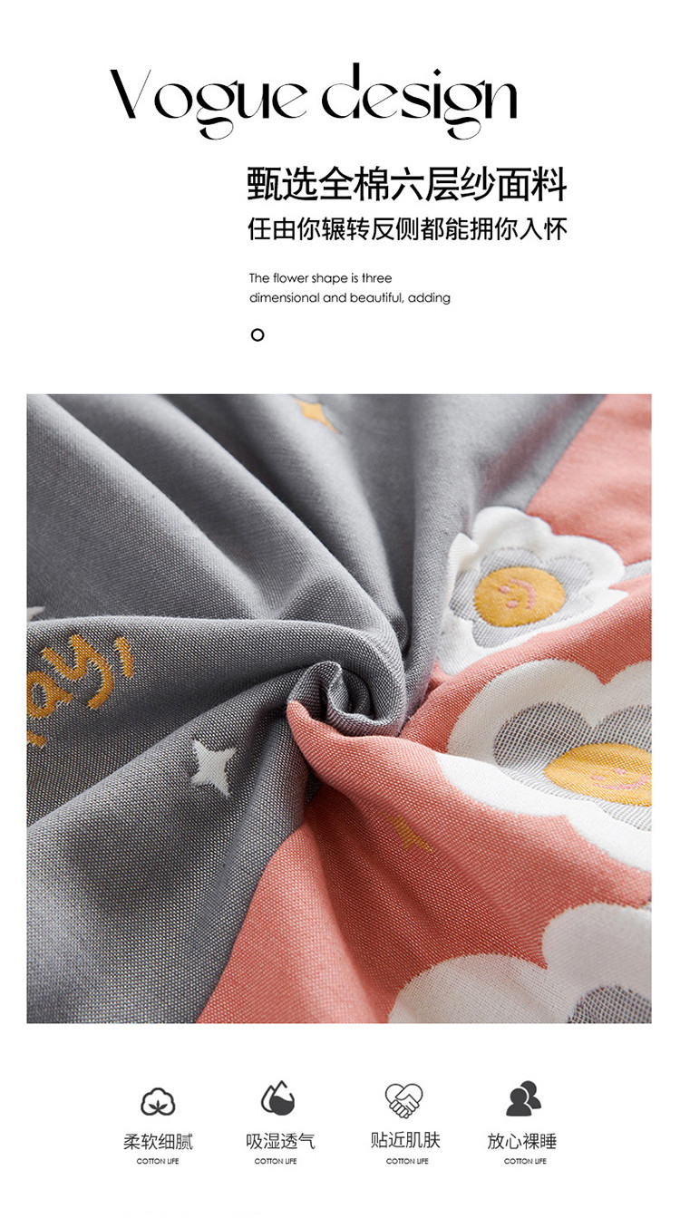 (总)棠薇家纺 2025新款爆款60S长绒棉厚百福字三层纱布毯 200x230cm 厚款60S百福毯,百福毯厚款