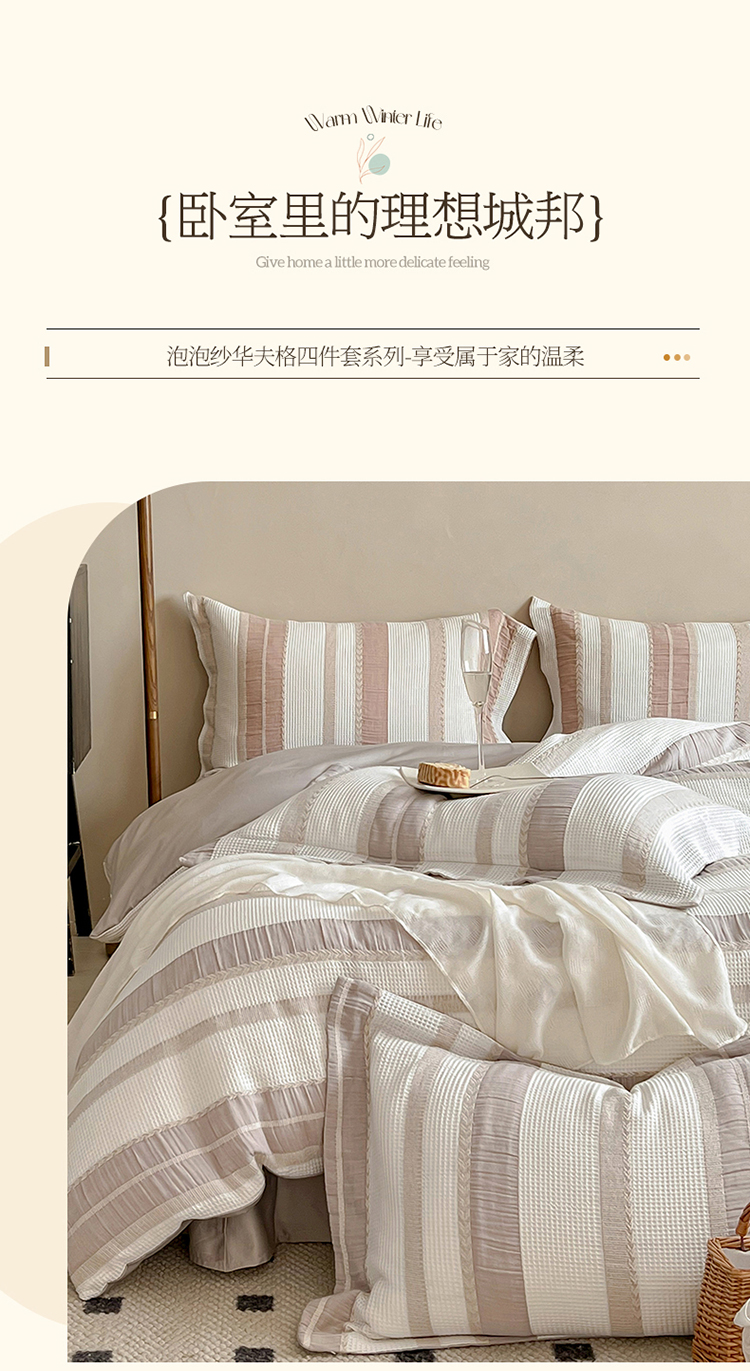 商品名称:名品优仓 2023新款泡泡纱华夫格四件套 西尔月灰