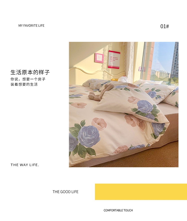 (总)瑞莱 2025全新纯棉清新小碎花四件套,蓝香清韵,那些花儿,紫樱桃