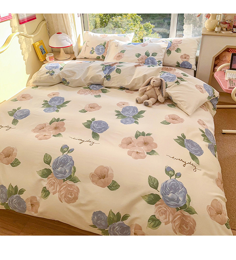 商品名称:瑞莱 2023新款全棉印花四件套-复古风 蓝色妖姬