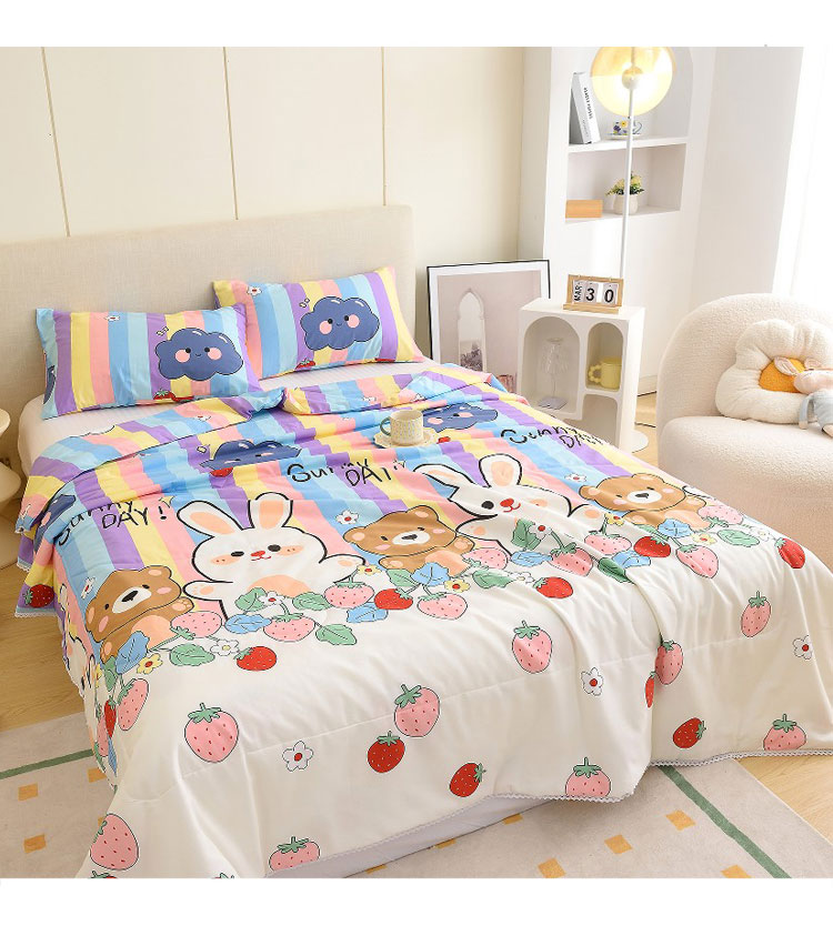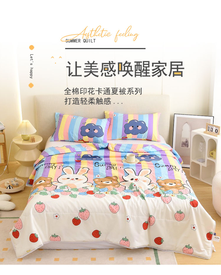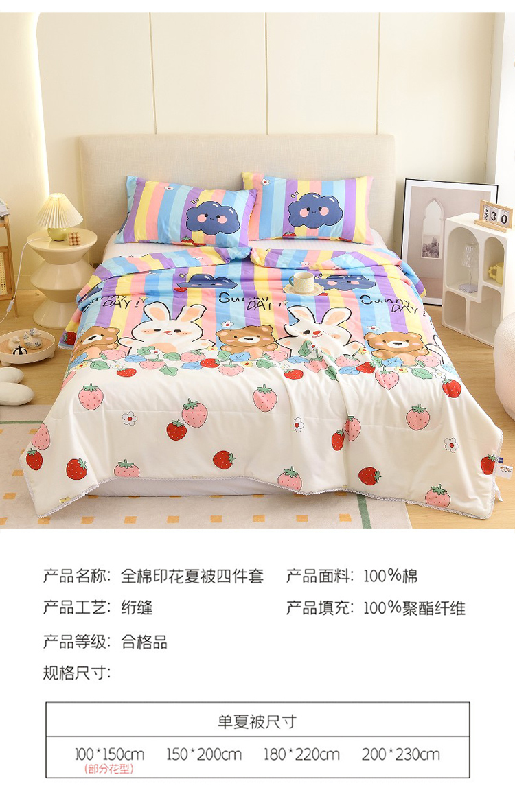 商品名称:德芙 2023新款全棉印花卡通夏被四件套 天真小兔