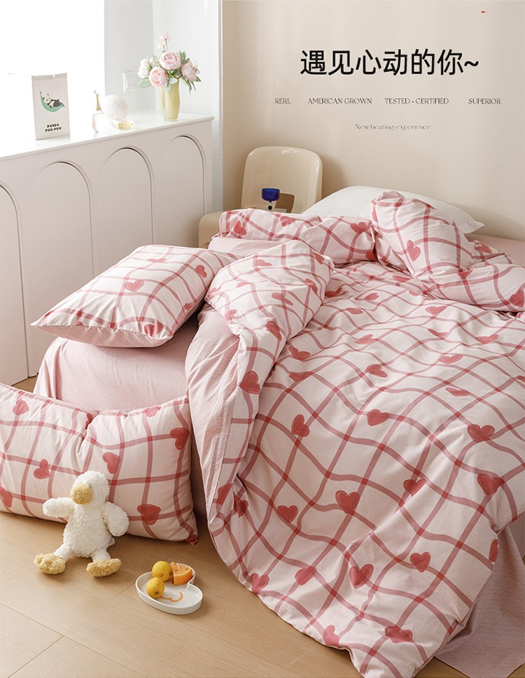 (总)2023新款40支纱全棉13070锁边工艺款四件套系列,格子爱心,嘉兰,咖条,朗尼,小兔兔,星星兔