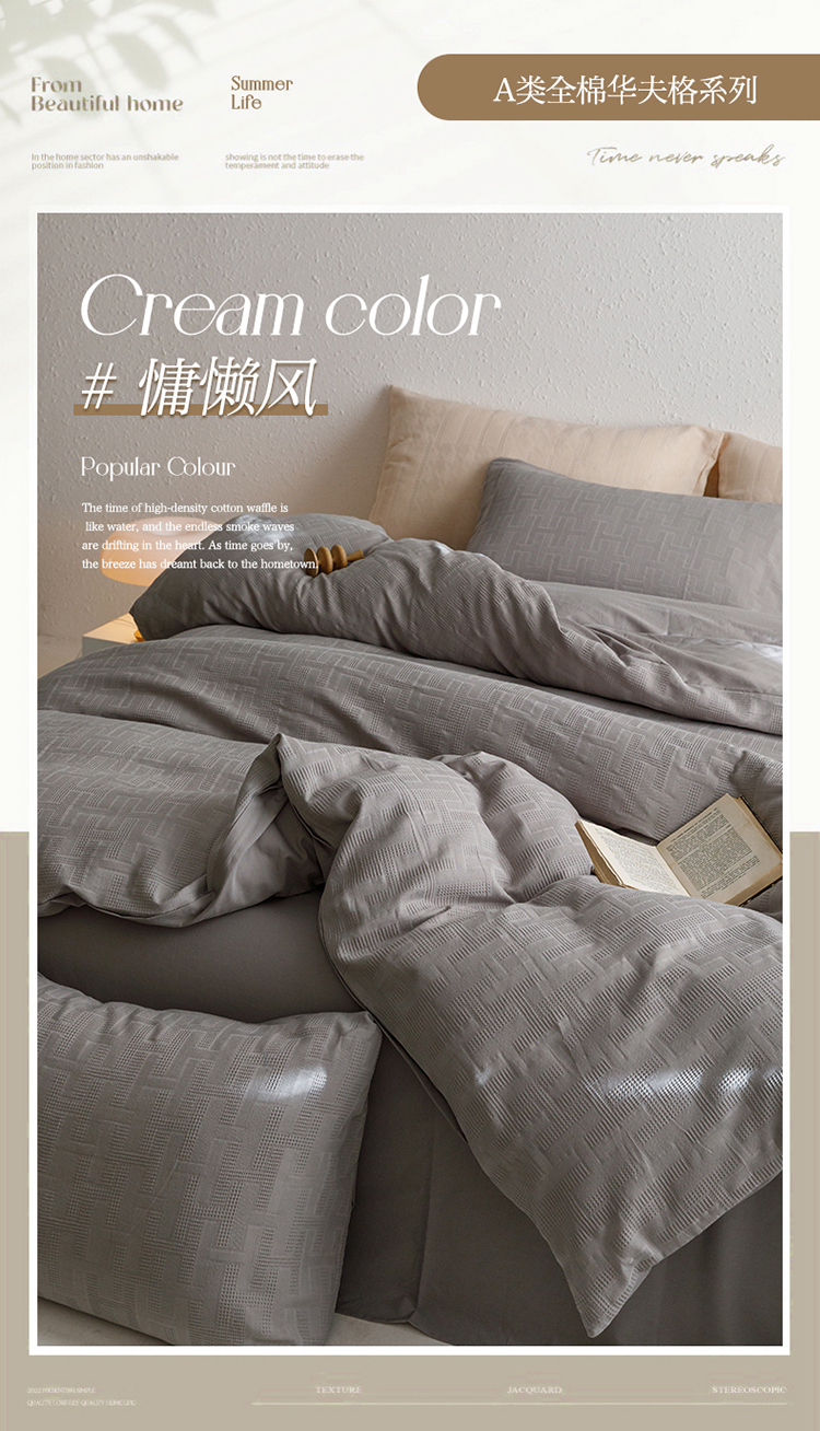 商品名称:瑞米家居2023新款A类华夫格四件套-爱尚-迷之恋 爱尚-灰色