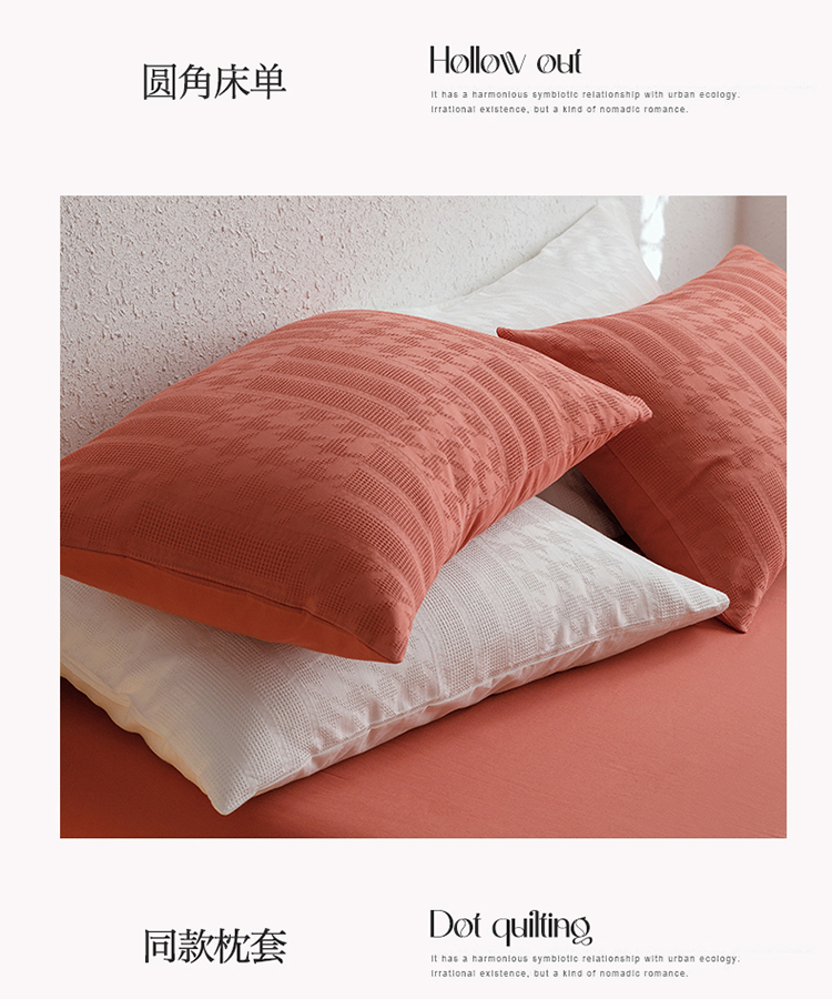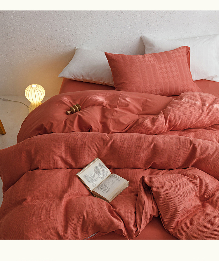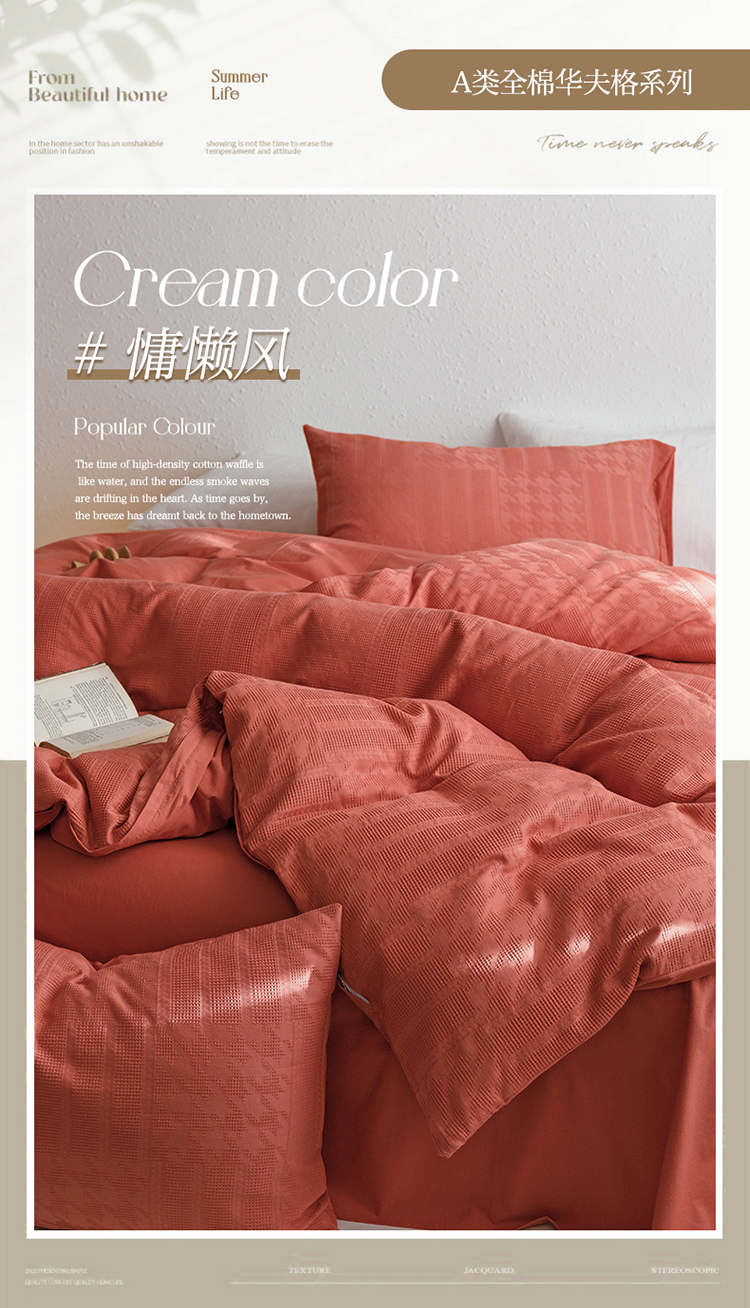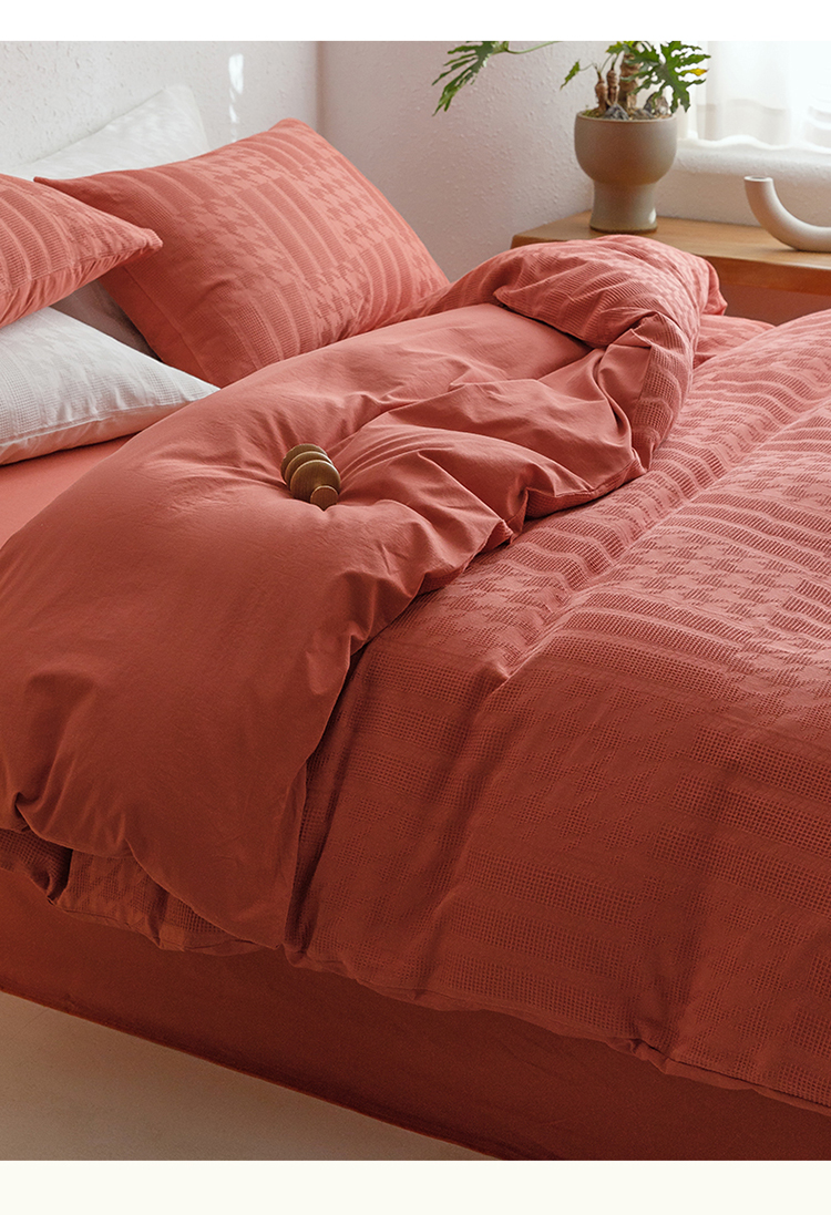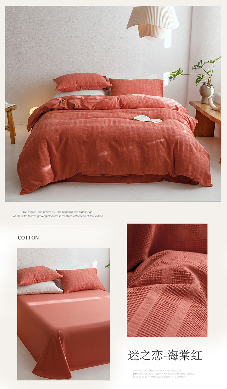 瑞米家居2023新款A类华夫格四件套-爱尚-迷之恋 迷之恋-海棠红