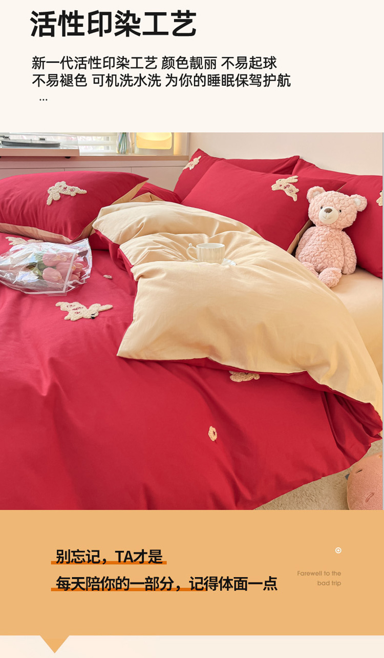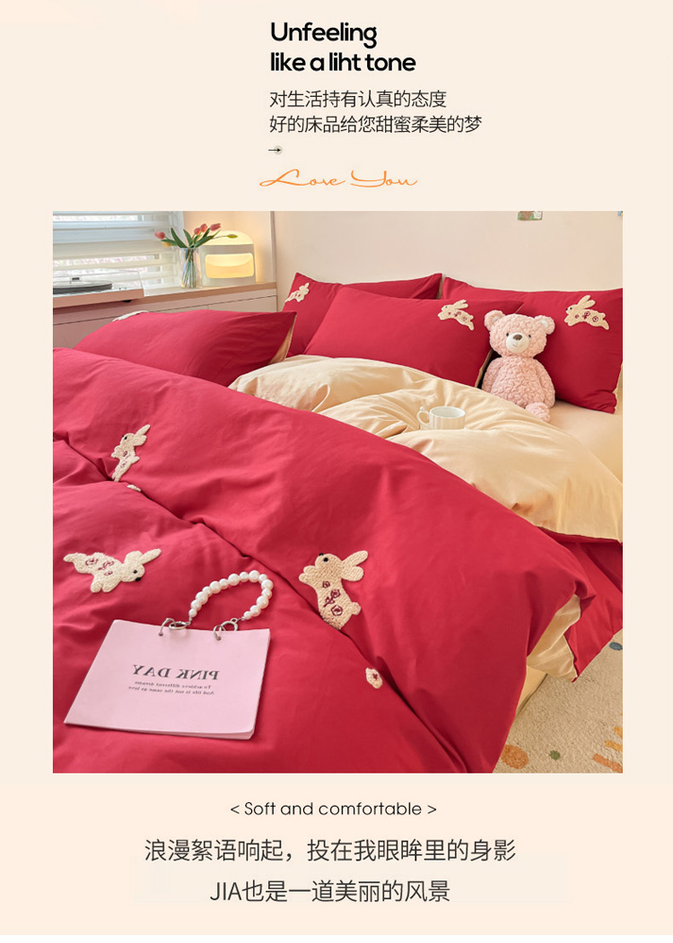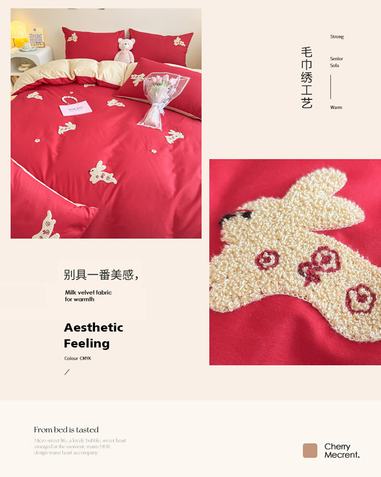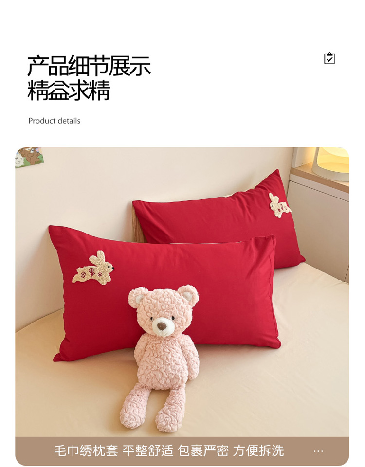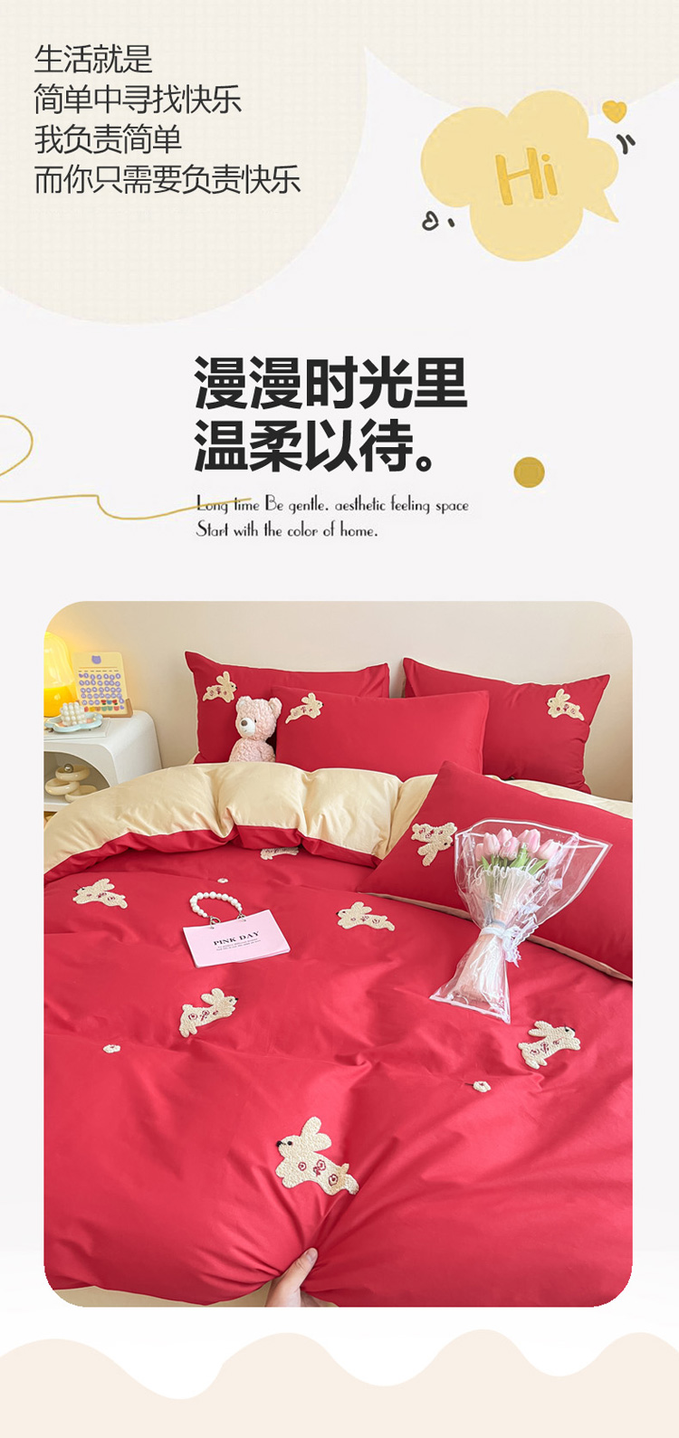 商品名称:丽涵 2025新款 全棉毛巾绣花小清新四件套(含买家秀) 小兔子-红