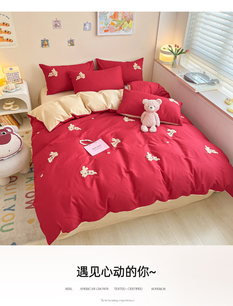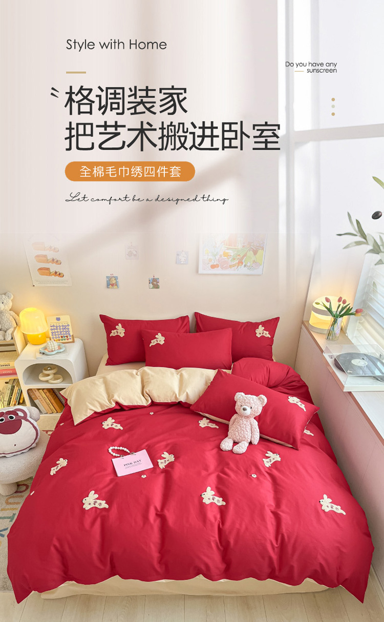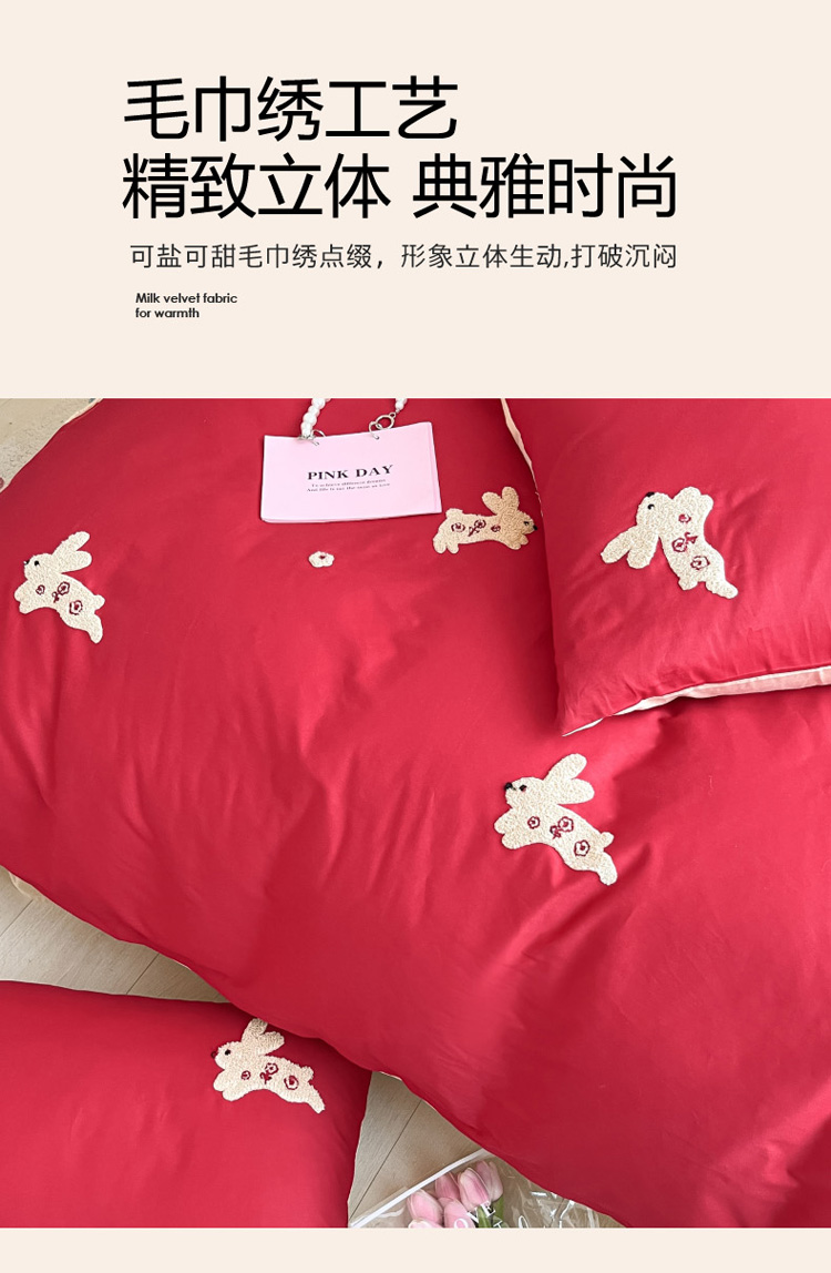 丽涵 2025新款 全棉毛巾绣花小清新四件套(含买家秀) 小兔子-红