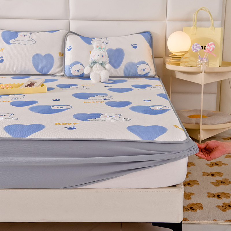 当前位置: 91家纺网 > 商品网购 > 床上用品 > 凉席 > 冰丝席 > 慕梵 2023新款 A类凉感冰柔丝提花床笠软凉席 爱心熊