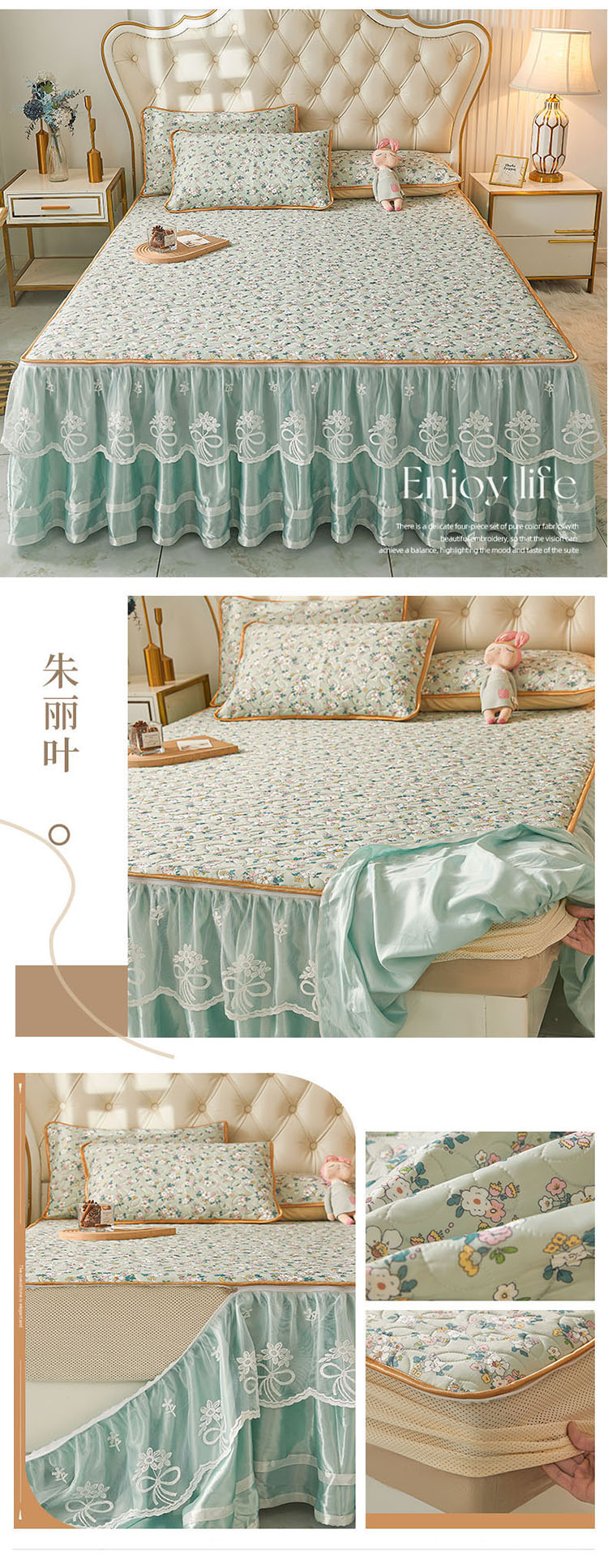 (总)恋尚 2025新款韩式蕾丝丝光棉夹棉床裙四件套,蜜芙-浅蓝,蜜芙-米黄,蜜芙-蜜桃粉,蜜芙-浅白,蜜芙-水绿,蜜芙-香芋紫