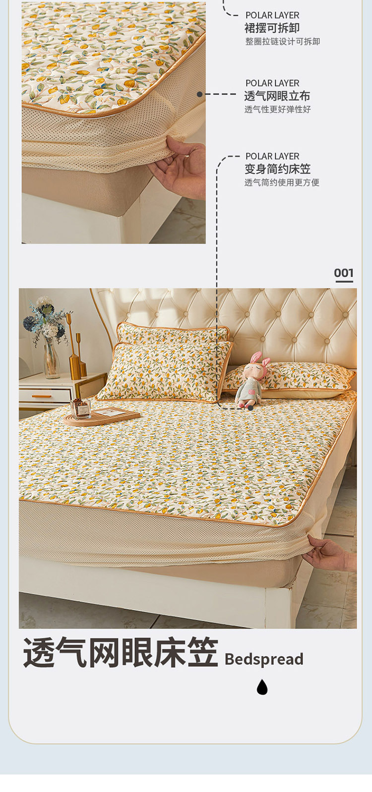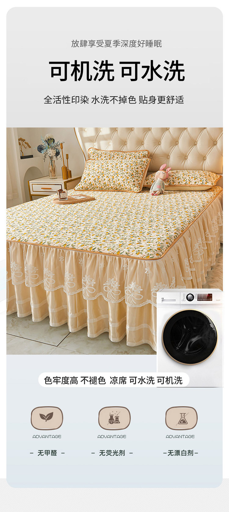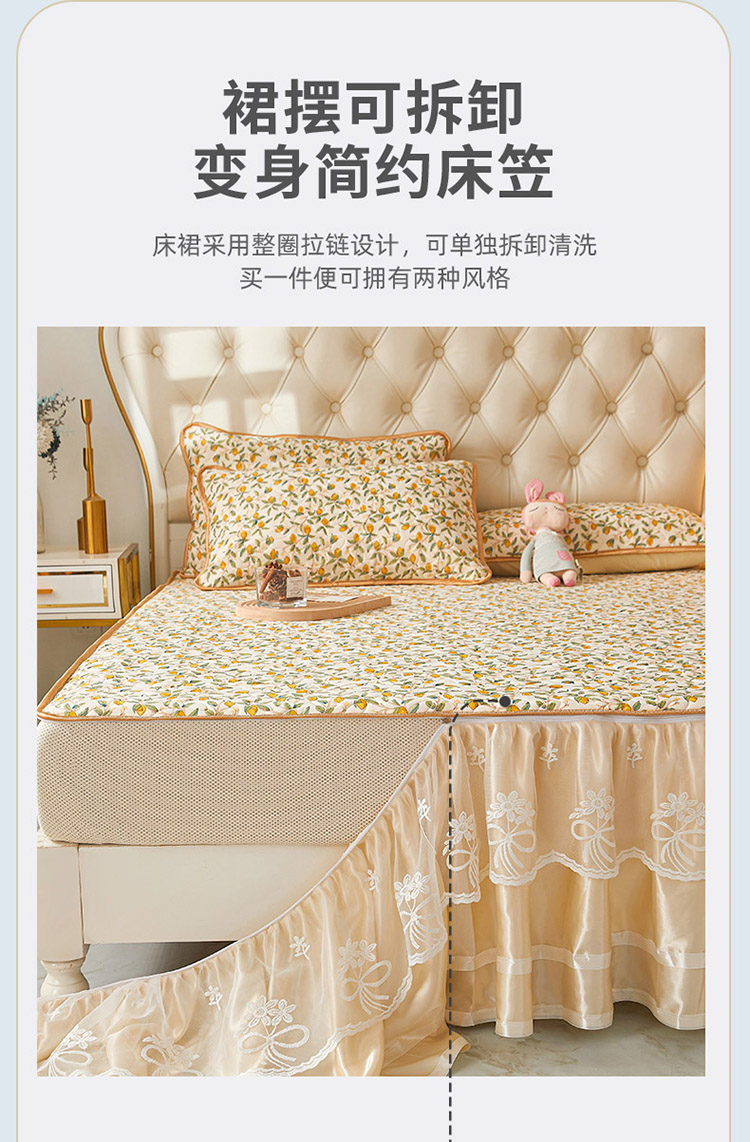商品名称:恋尚 2024新款欧式可脱卸带床笠式床裙0.5乳胶三件套 青柠