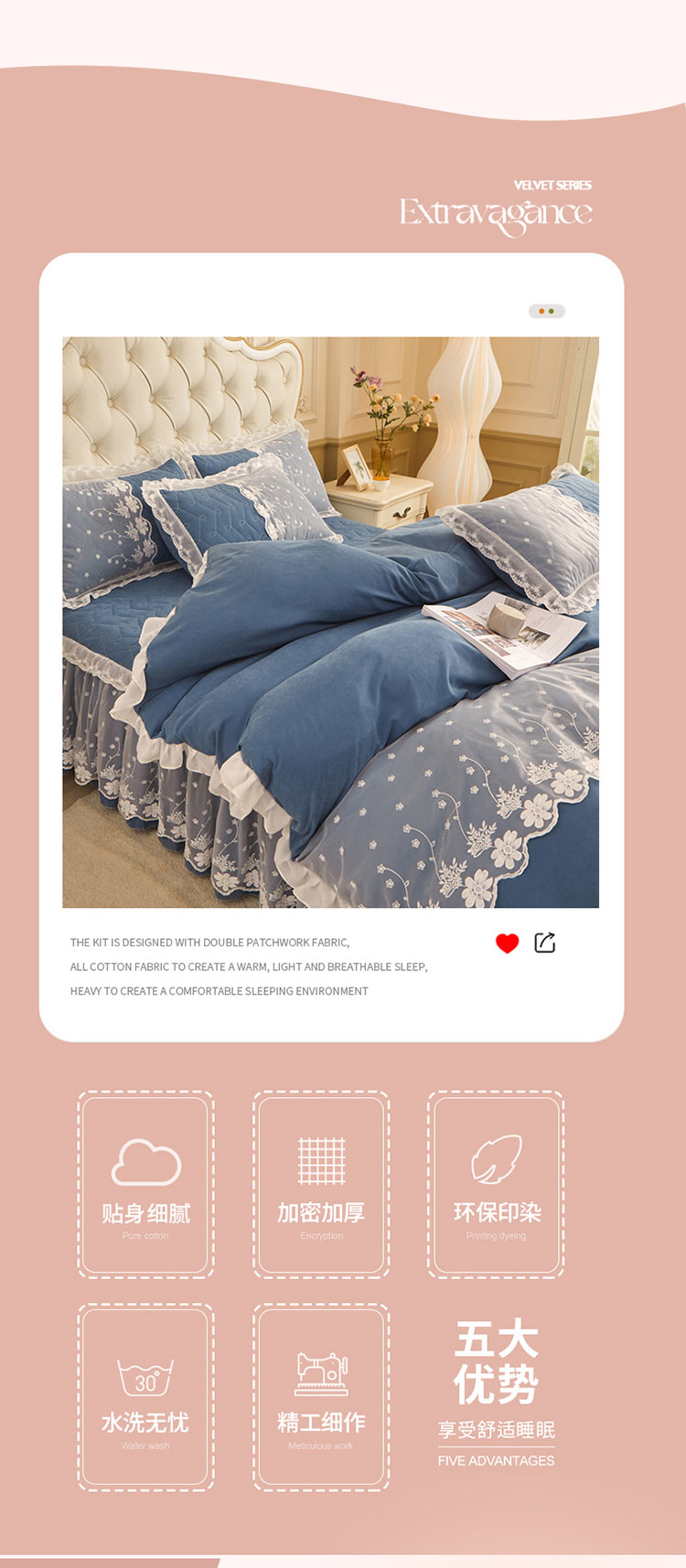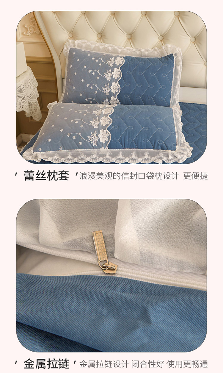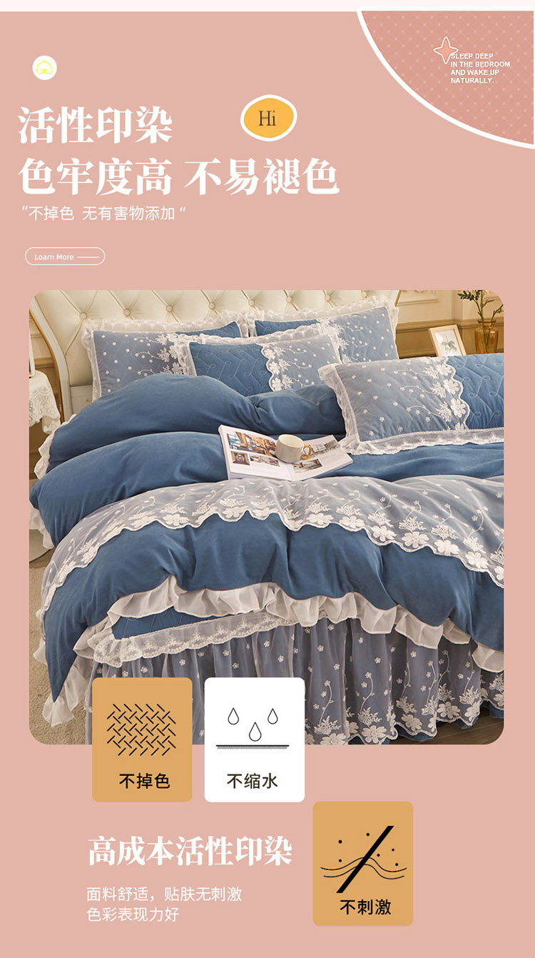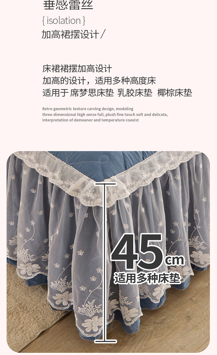 当前位置: 91家纺网 > 商品网购 > 床品套件 > 四件套 > 全棉普通四件套 > 恋尚 2023新款蜜桃棉夹棉床裙款四件套 花婷- 牛仔蓝