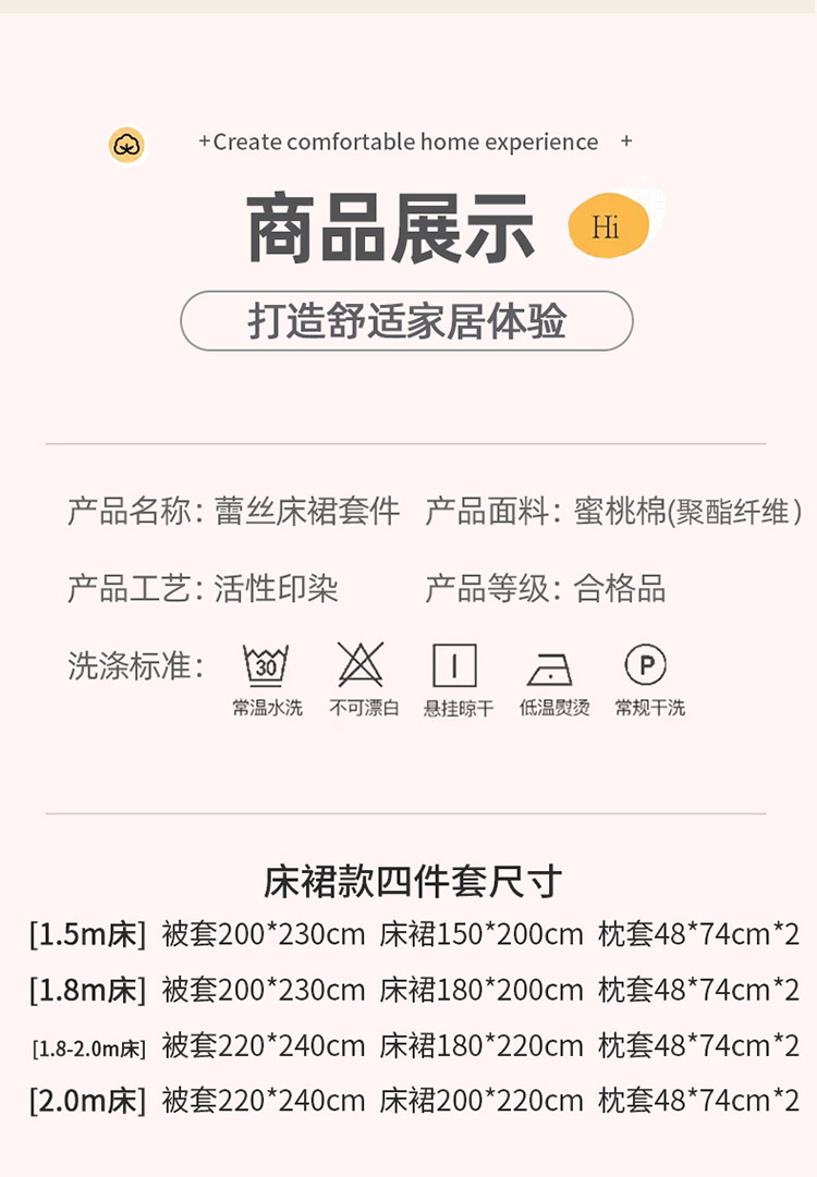 1.8m床裙款四件套(被套200*230cm床裙180*200cm枕套48*74cm*2) | ¥195.00 |