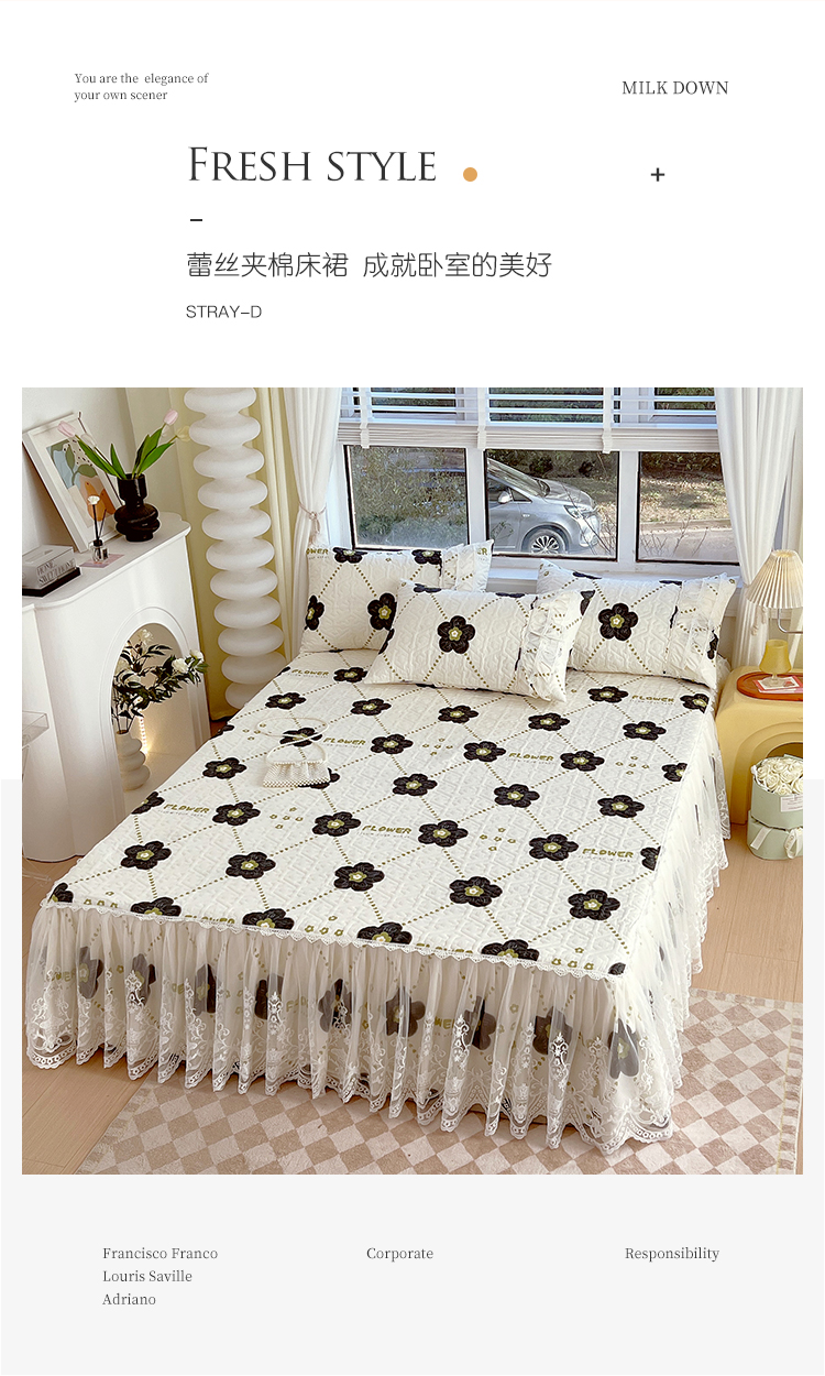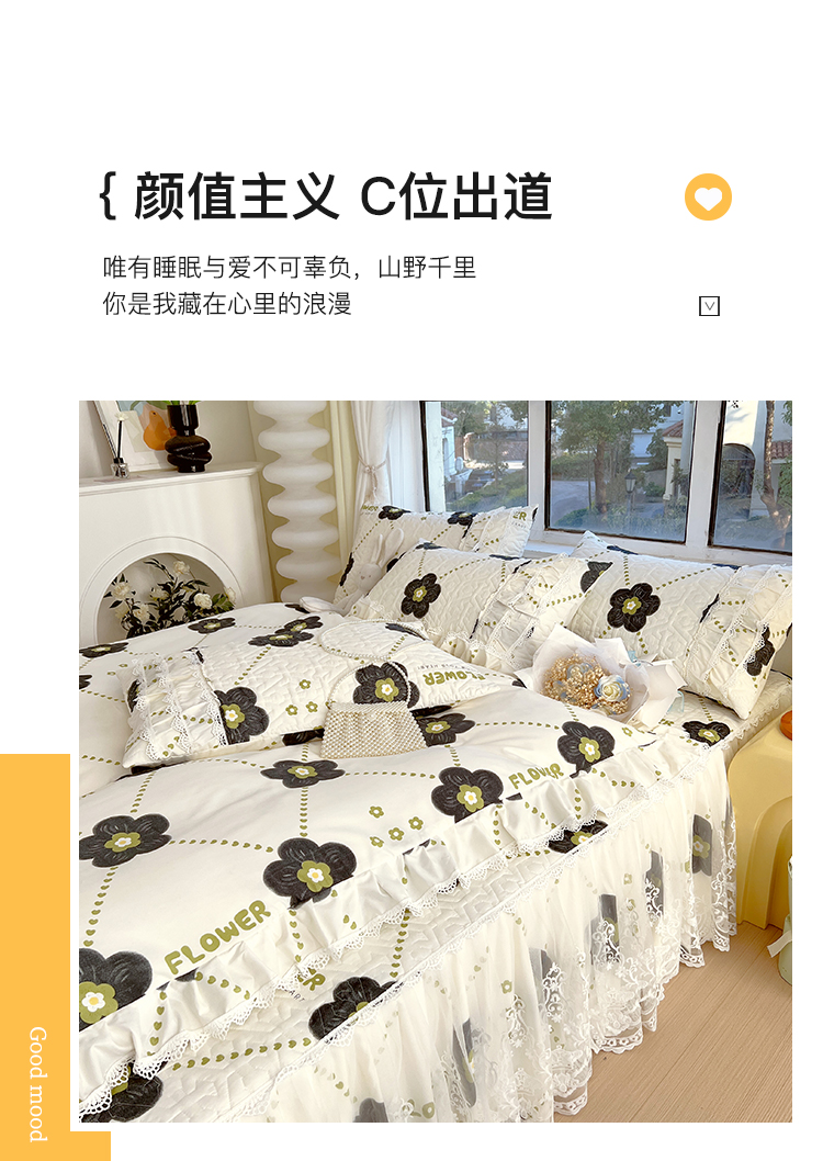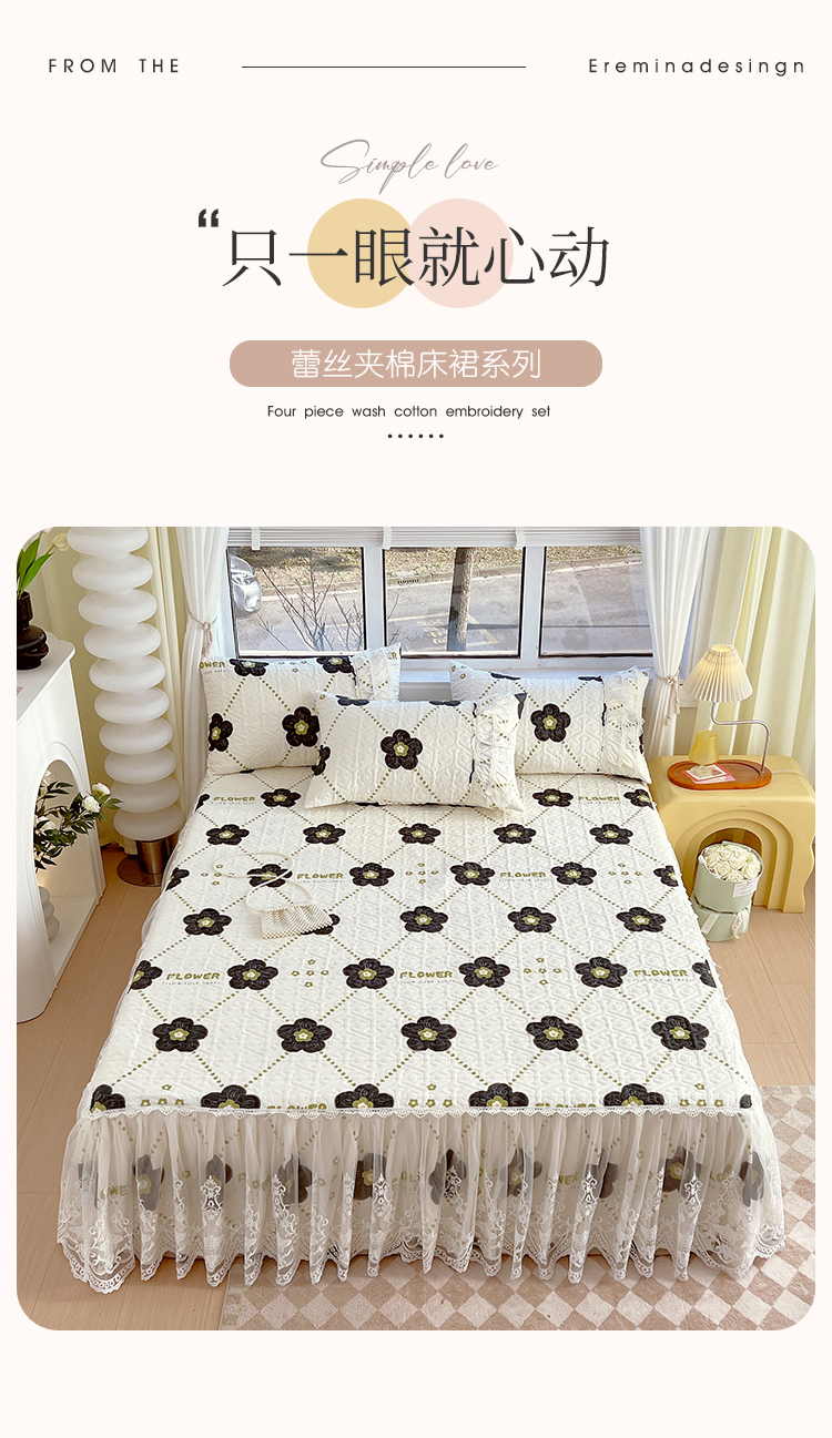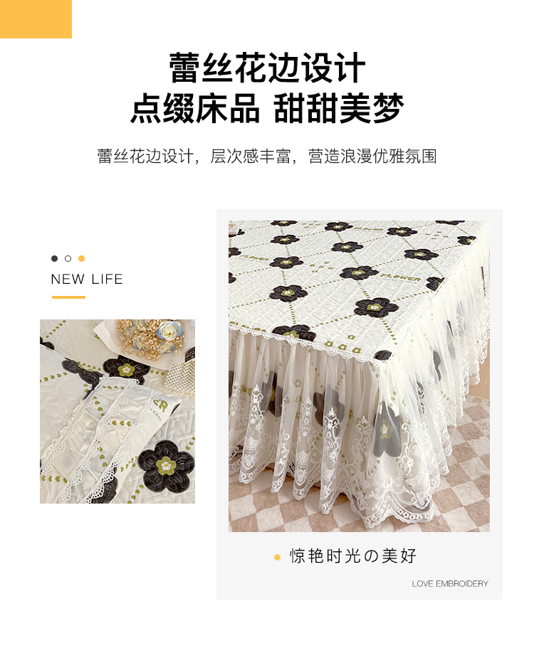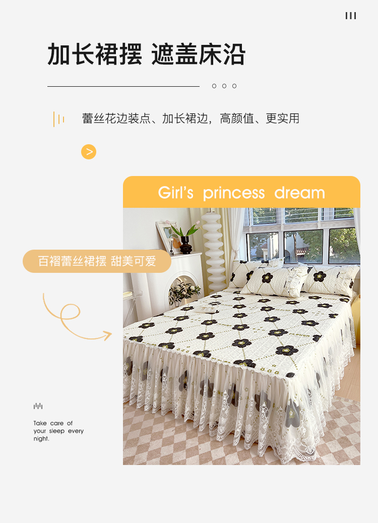 罗艺轩 2024新款法式风蕾丝夹棉床裙三件套 花想容-花漾青春