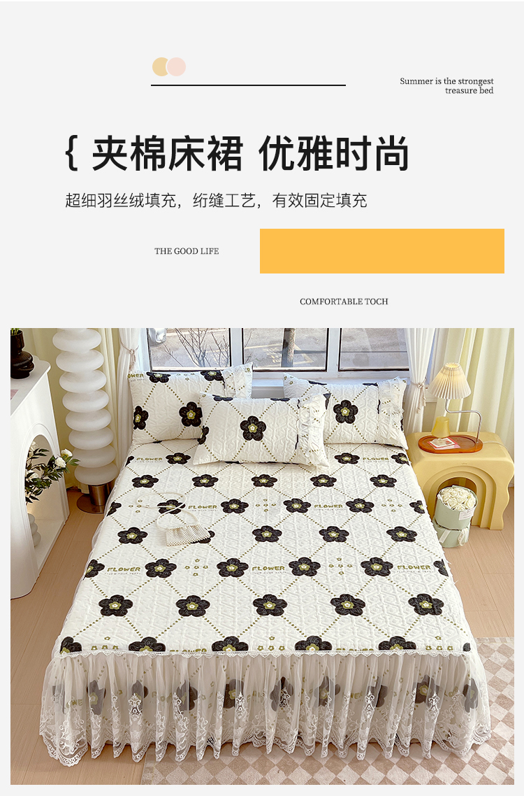 商品名称:罗艺轩 2024新款法式风蕾丝夹棉床裙三件套 花想容-花漾青春