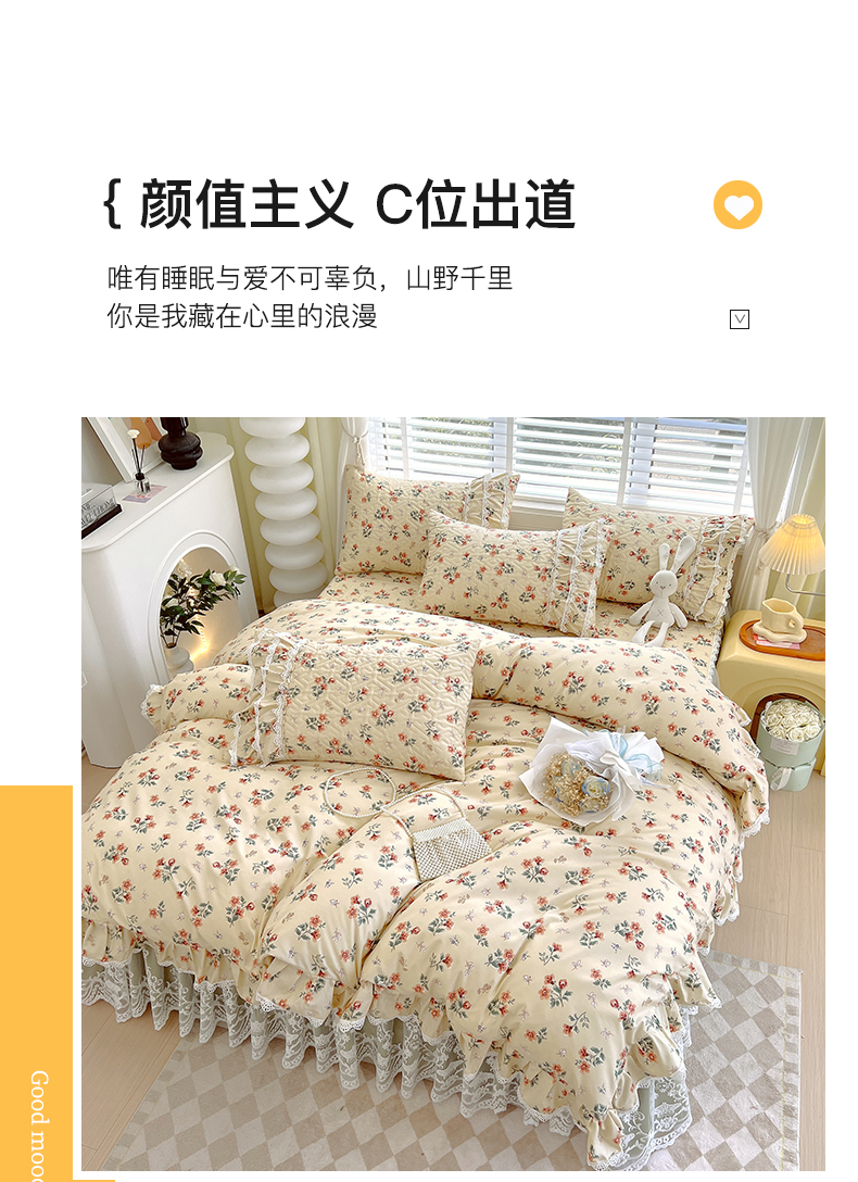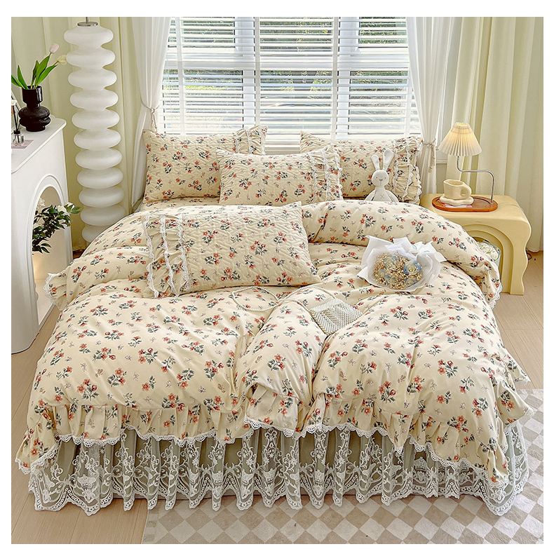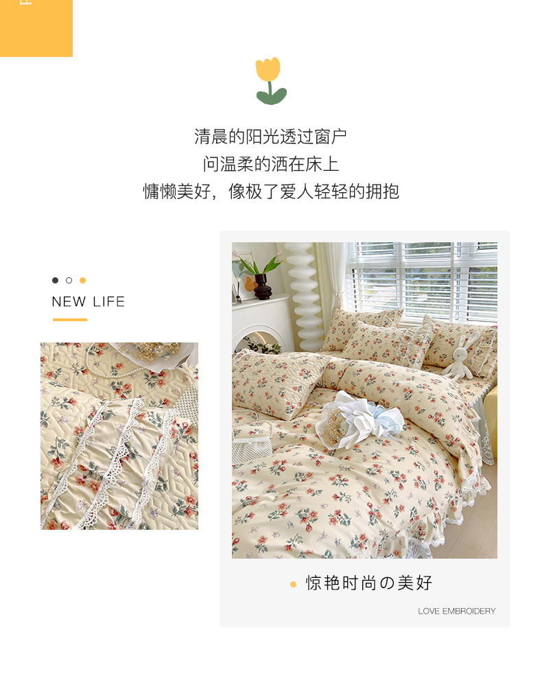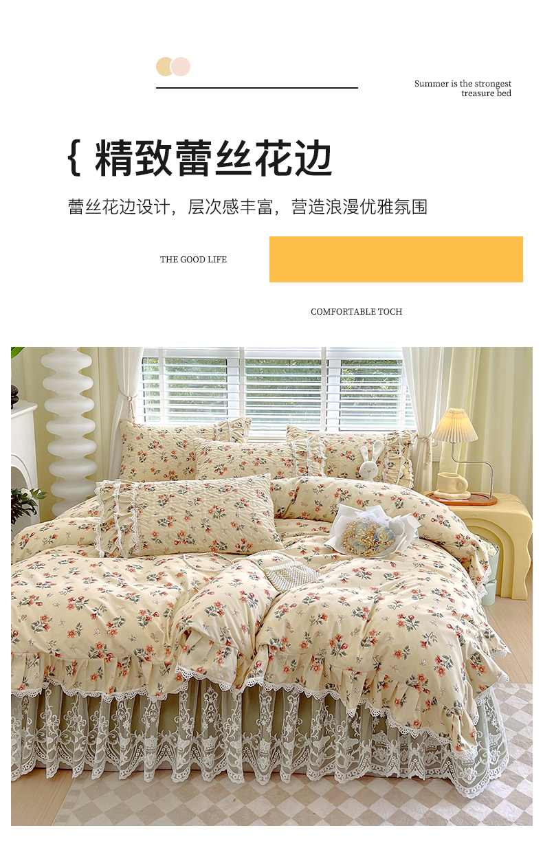 当前位置: 91家纺网 > 商品网购 > 床品套件 > 四件套 > 化纤普通四件套 > 罗艺轩 2024新款法式风蕾丝夹棉床裙款四件套 花想容-春风南岸