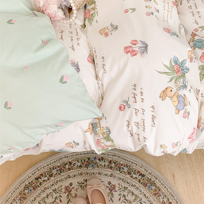 昔可家纺 2023新款全棉四件套-甜美春日ok 春日采花小兔