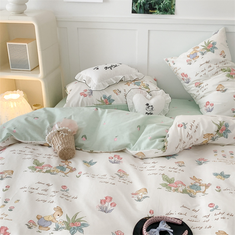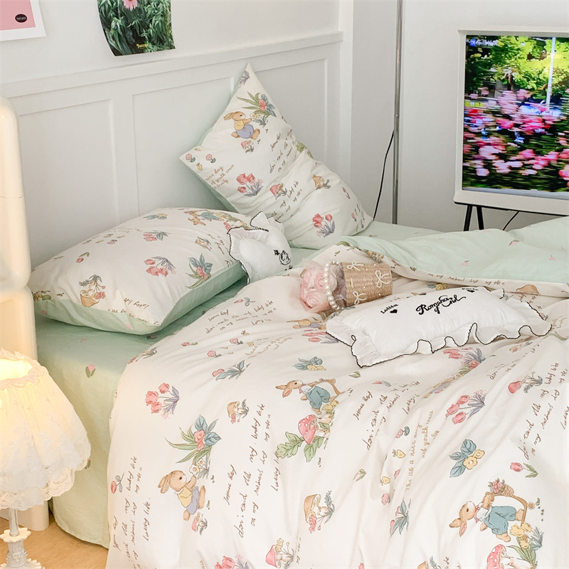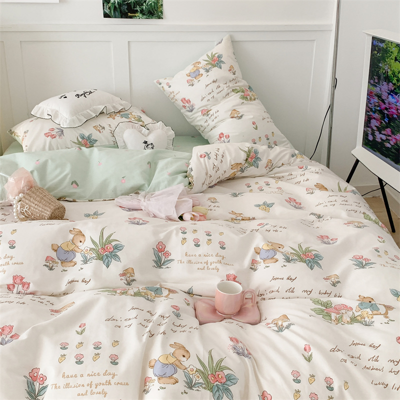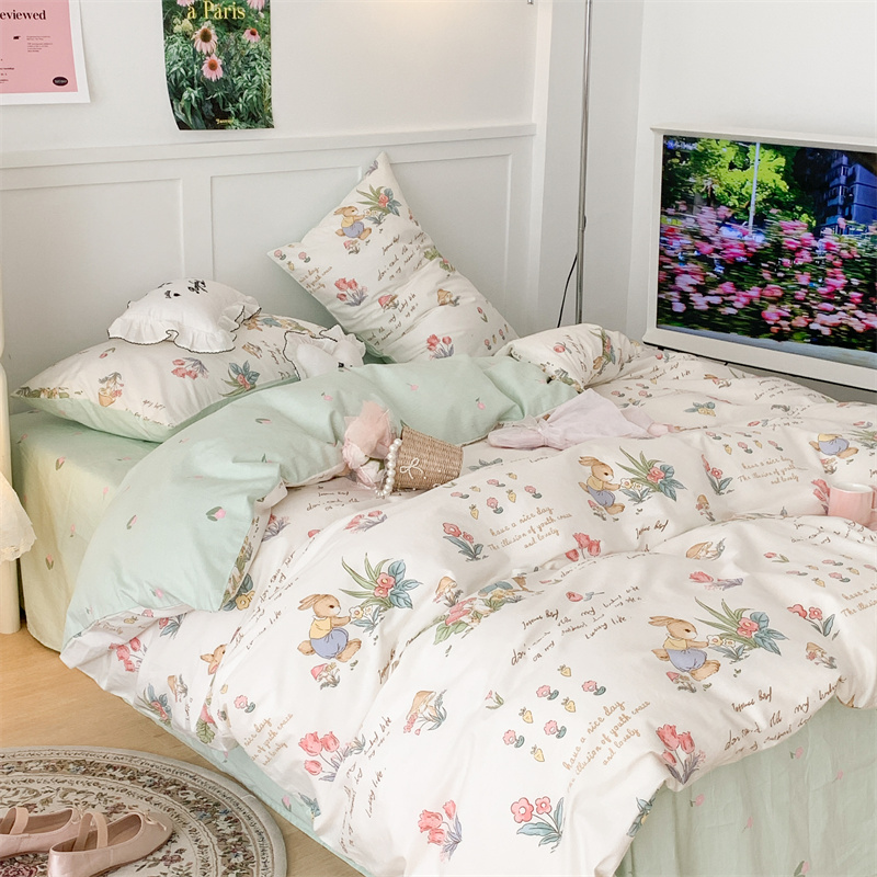 商品名称:昔可家纺 2023新款全棉四件套-甜美春日ok 春日采花小兔