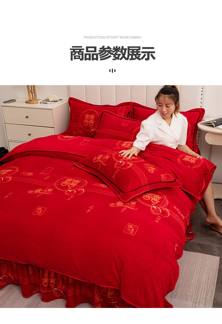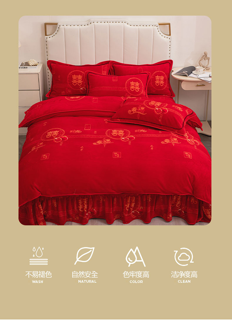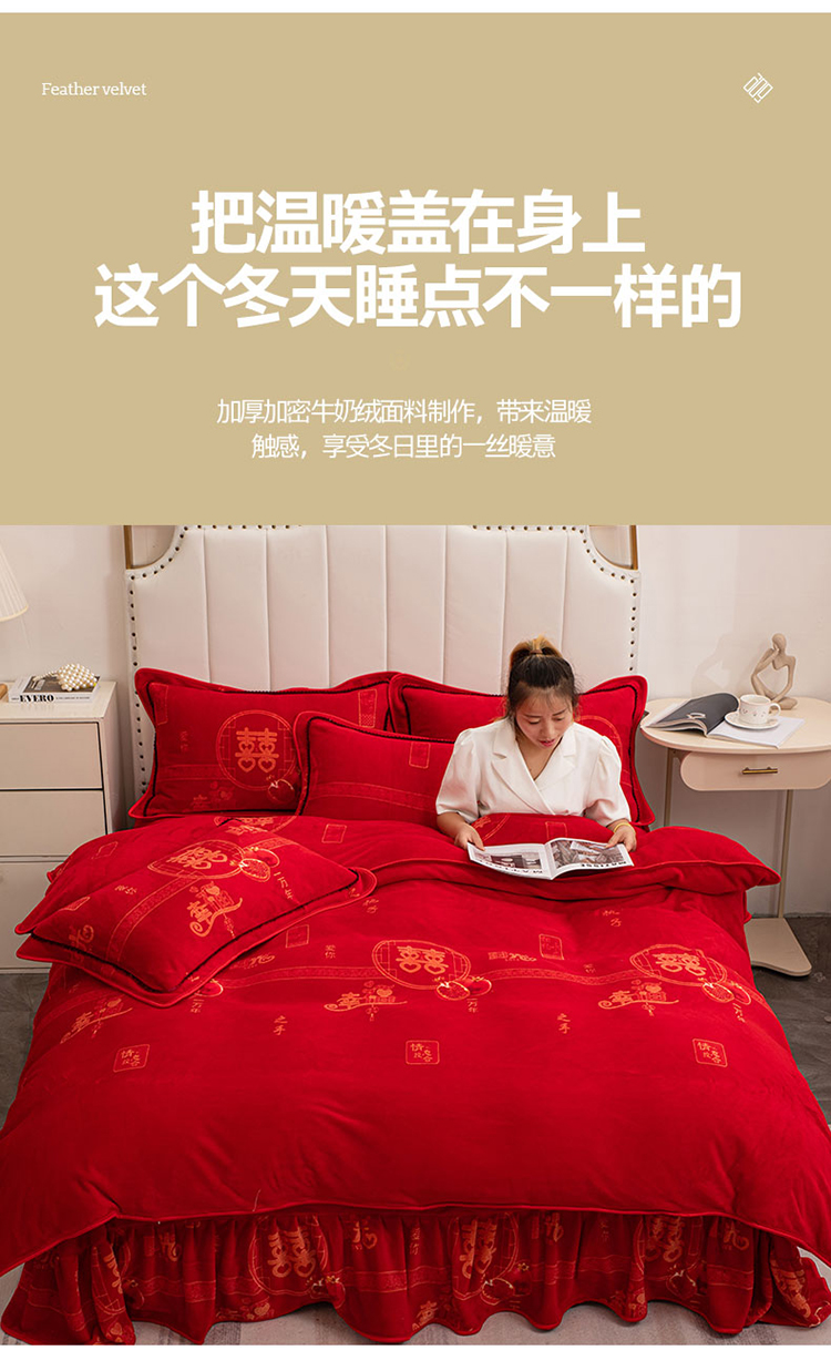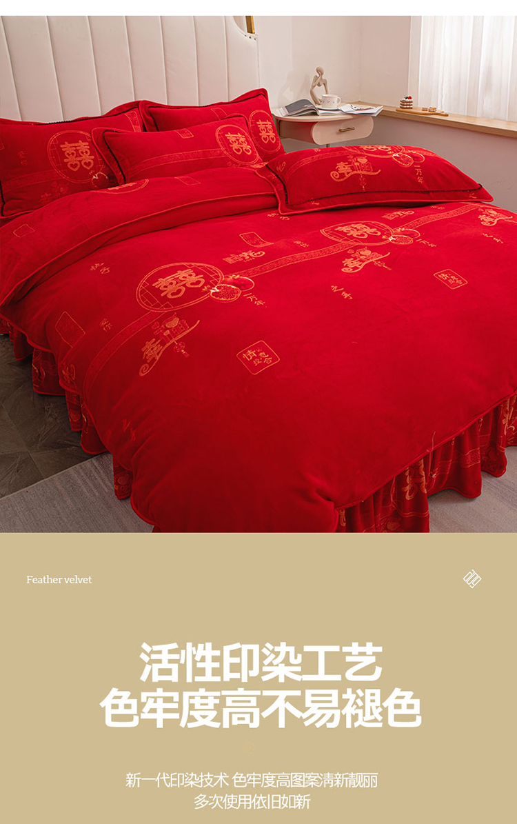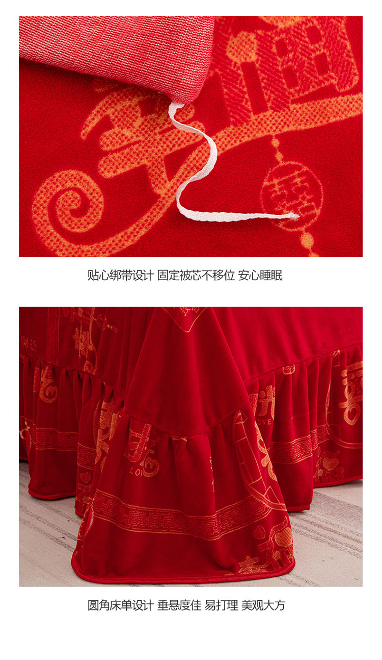 商品名称:登登家纺 加厚印花牛奶金貂法莱宝宝绒四件套 喜结良缘
