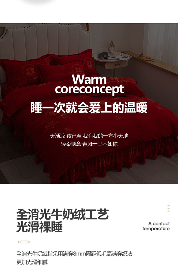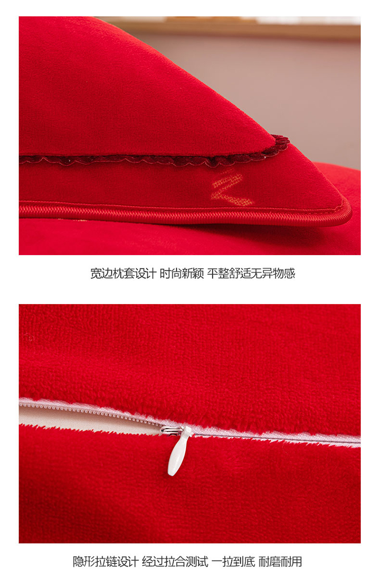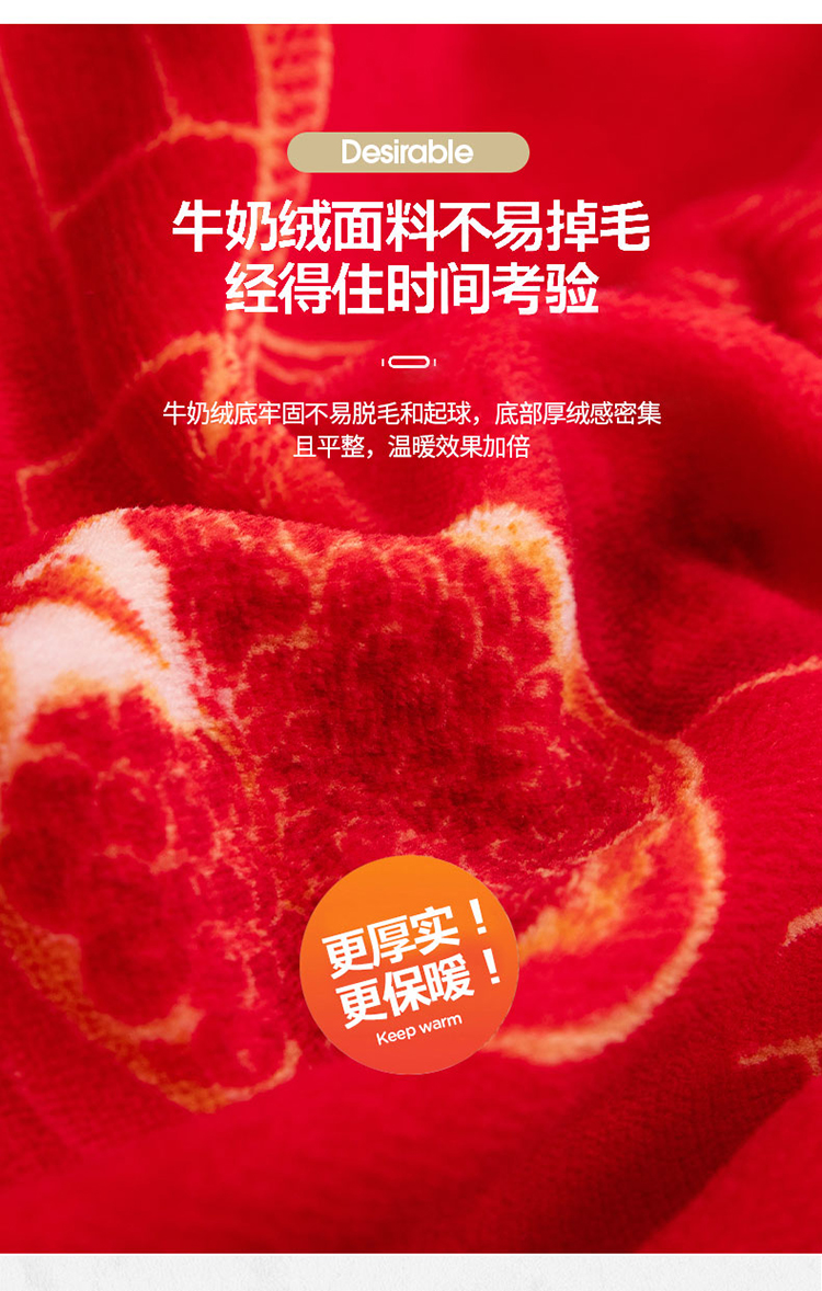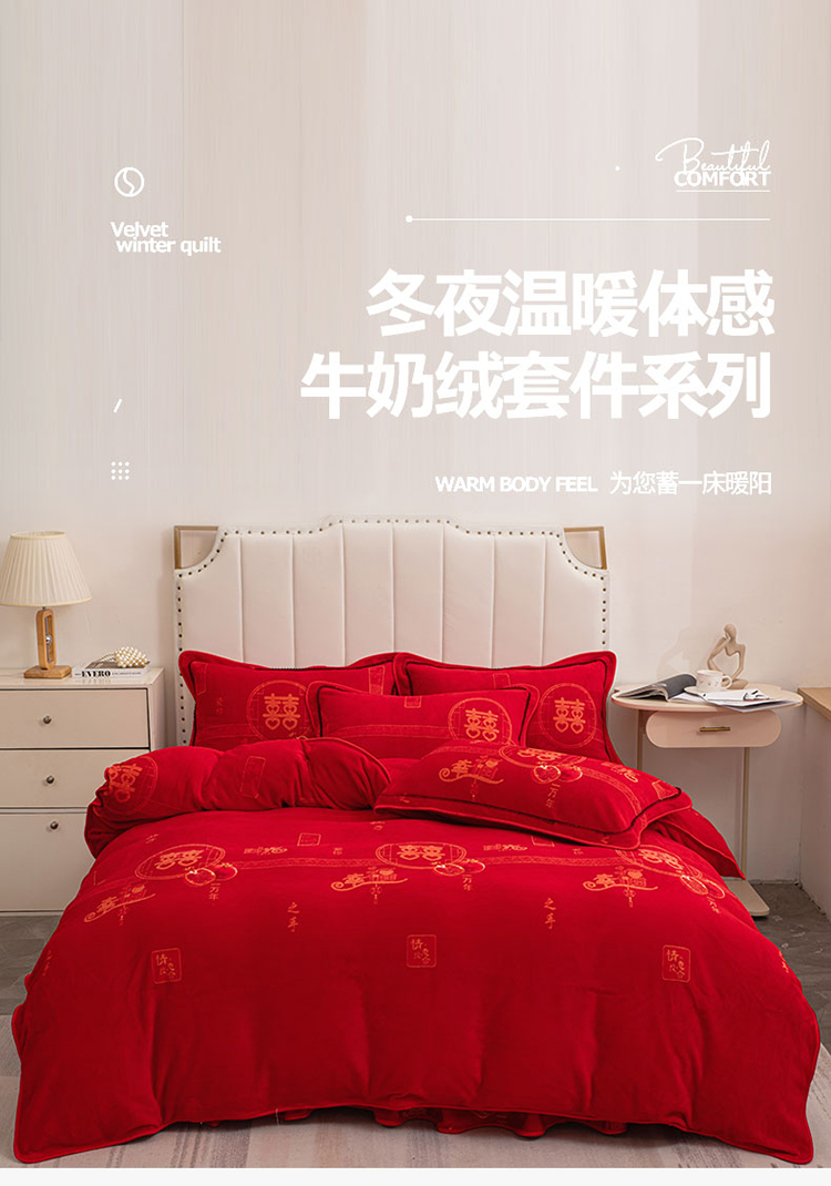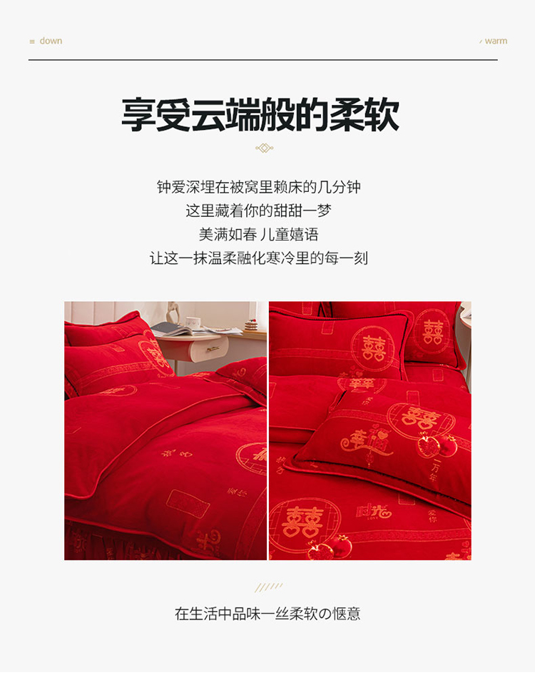 商品名称:登登家纺 加厚印花牛奶金貂法莱宝宝绒四件套 喜结良缘