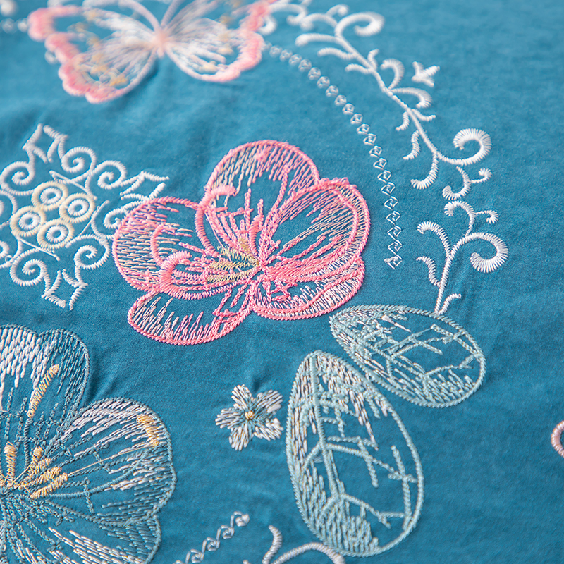 (总)优姿家纺 2026新款全棉拼接绣花四件套,繁花粉,繁花灰,繁花桔,繁花蓝,繁花绿,繁花紫