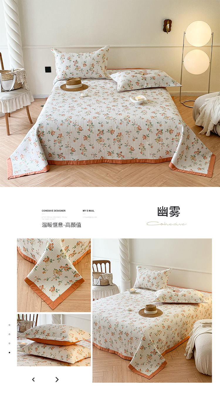 (总)上喜2025新款韩国全棉砂洗床盖系列,粉色,黄色,灰色,绿色,紫色