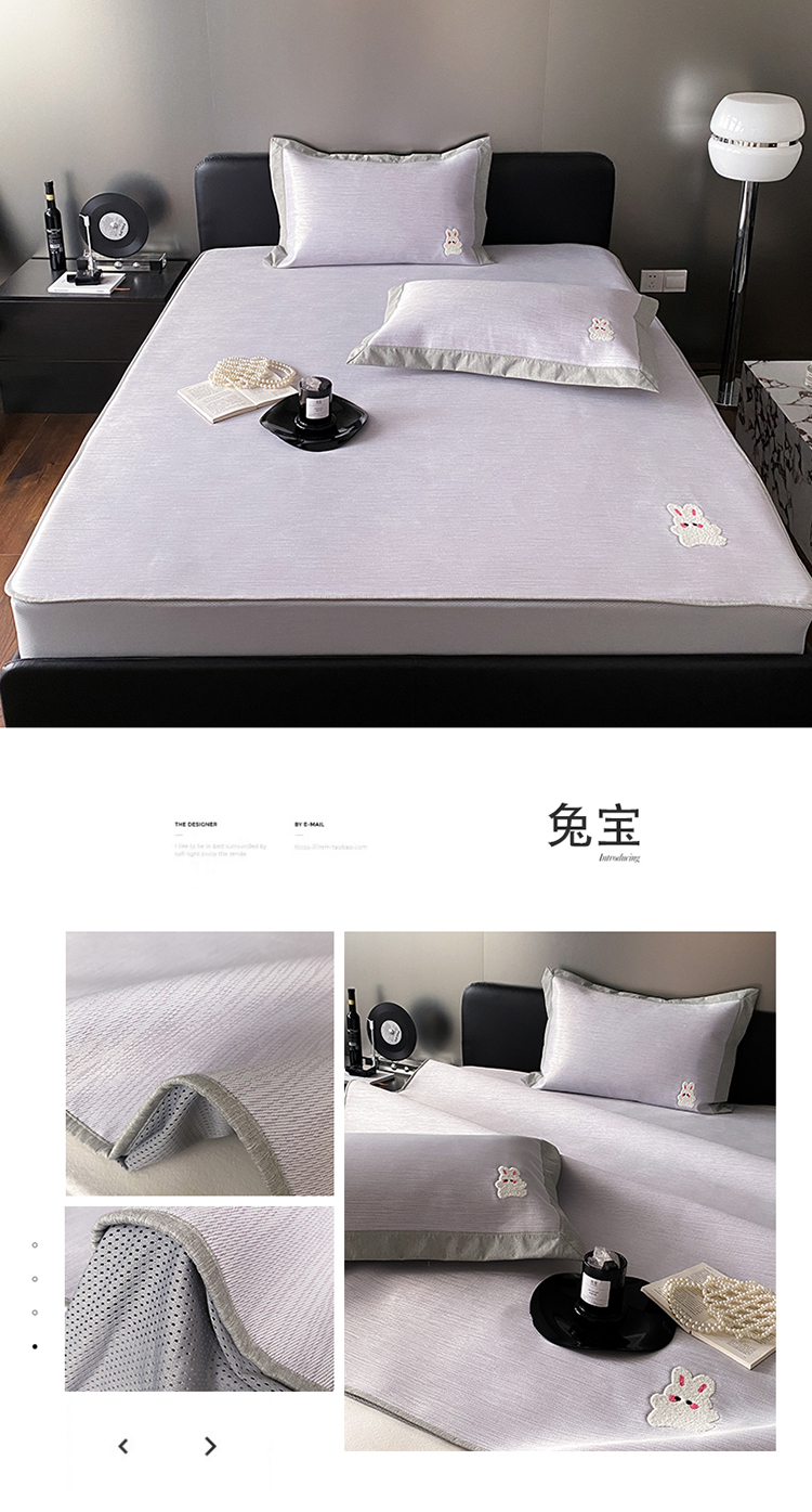 商品名称:三味舒屋 2025新款凉感抗菌防螨印花冰丝养生席床笠款 兔宝