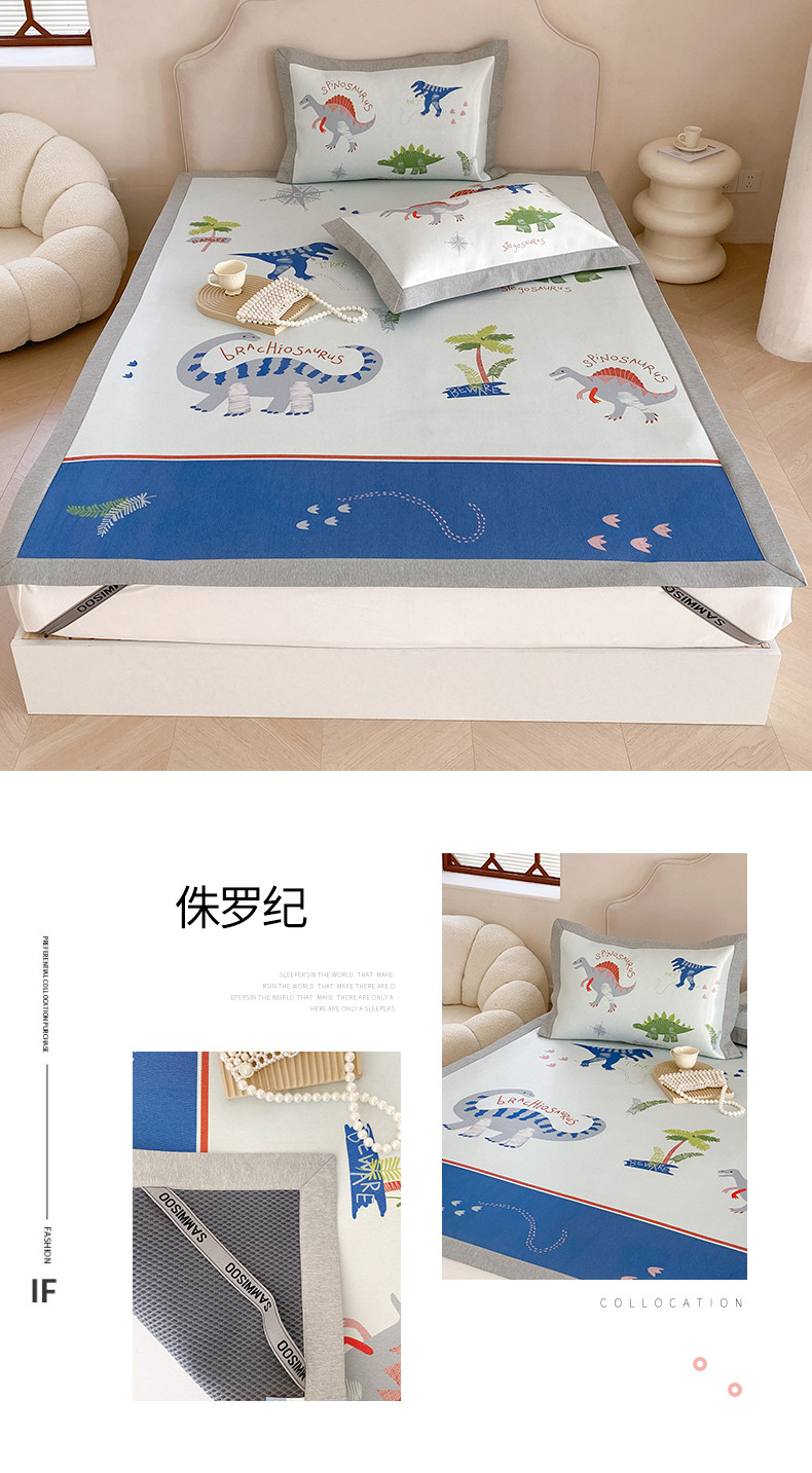 商品名称:三味舒屋 2023新款凉感抗菌防螨卡通印花冰丝养生席-床席款 侏罗纪