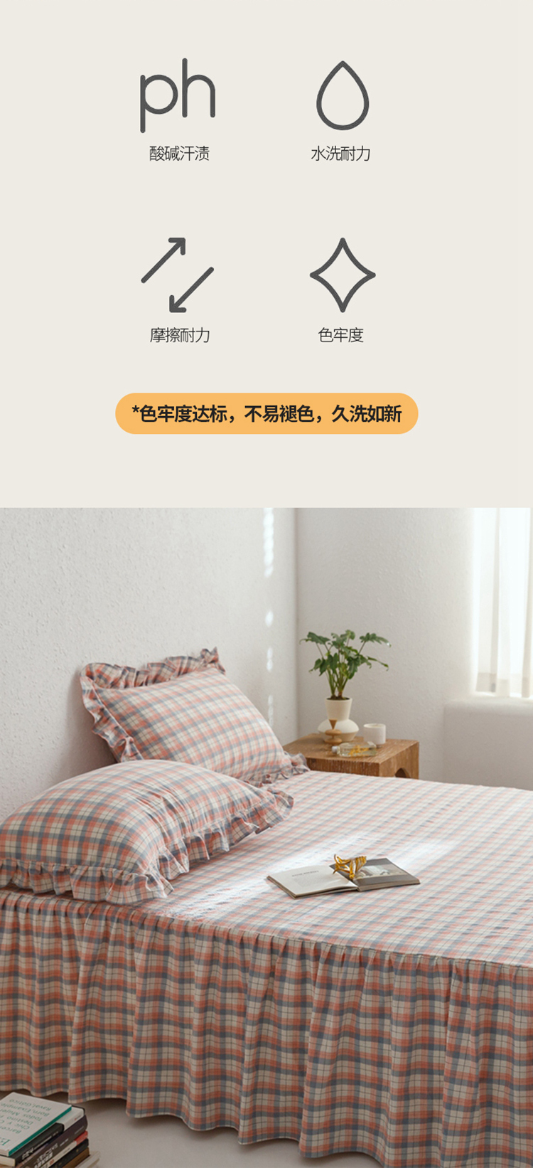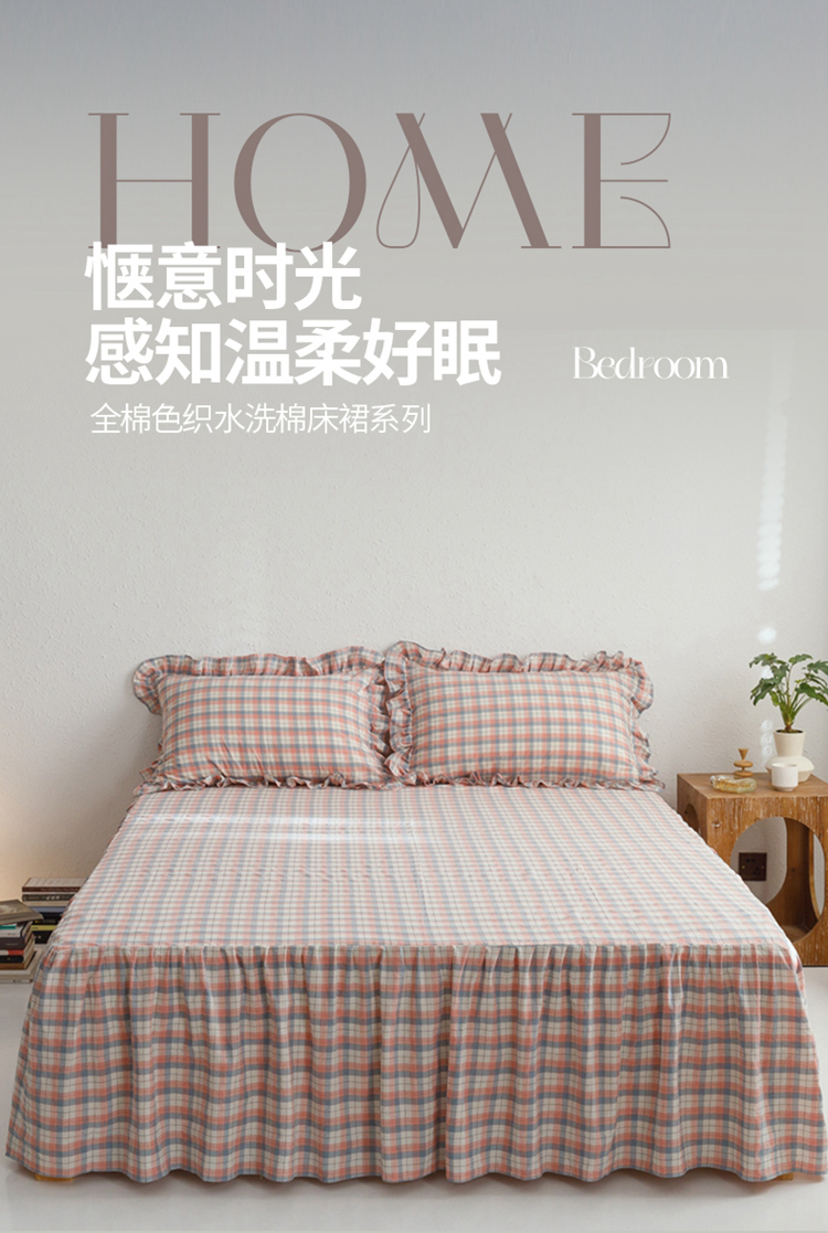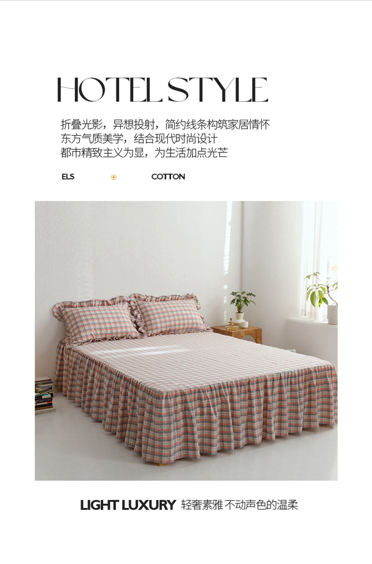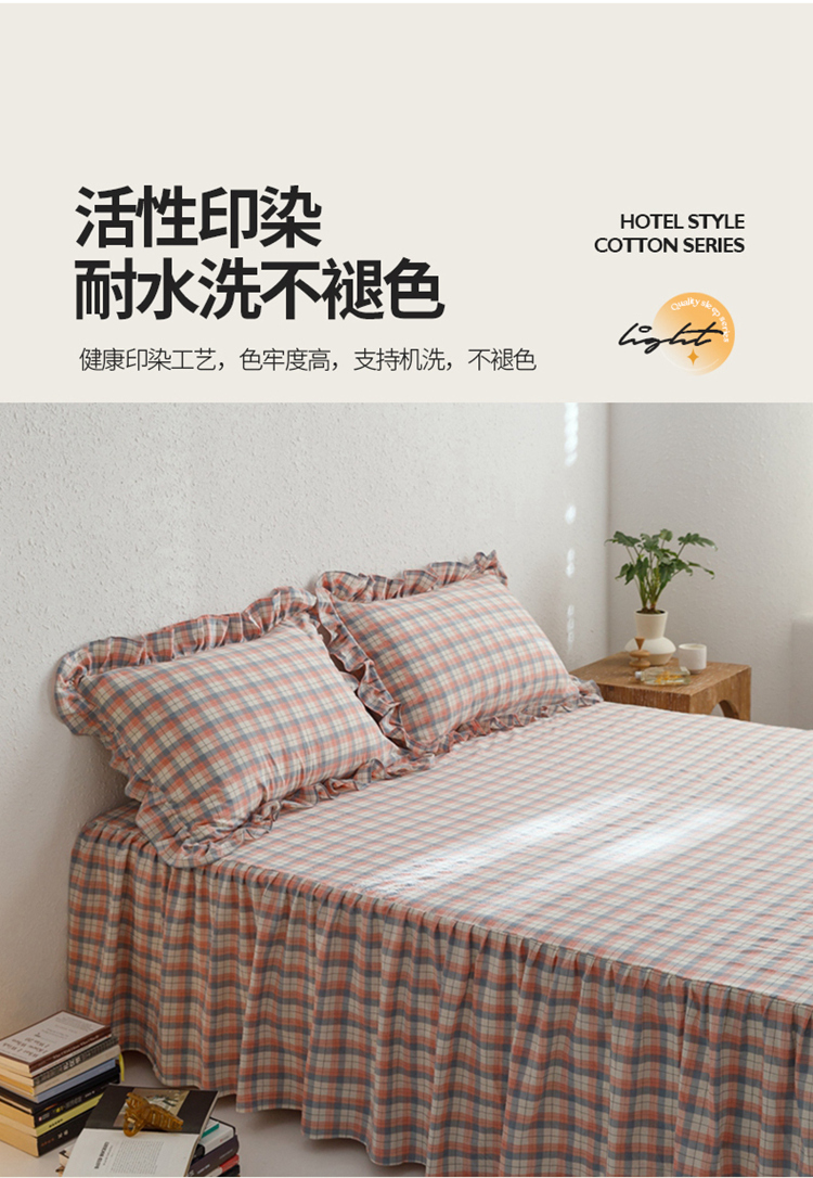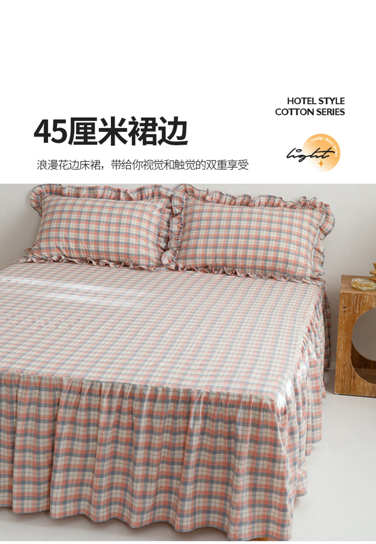 商品名称:忘忧草 2023新款全棉色织水洗棉床裙纯棉格子 春风曲-粉