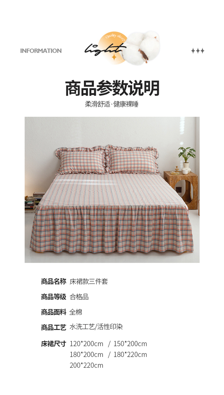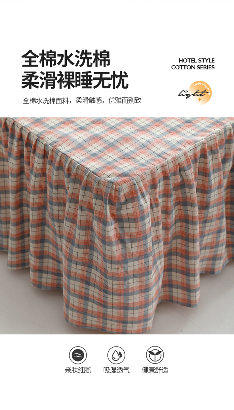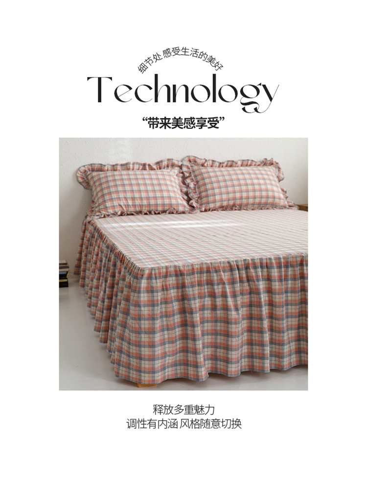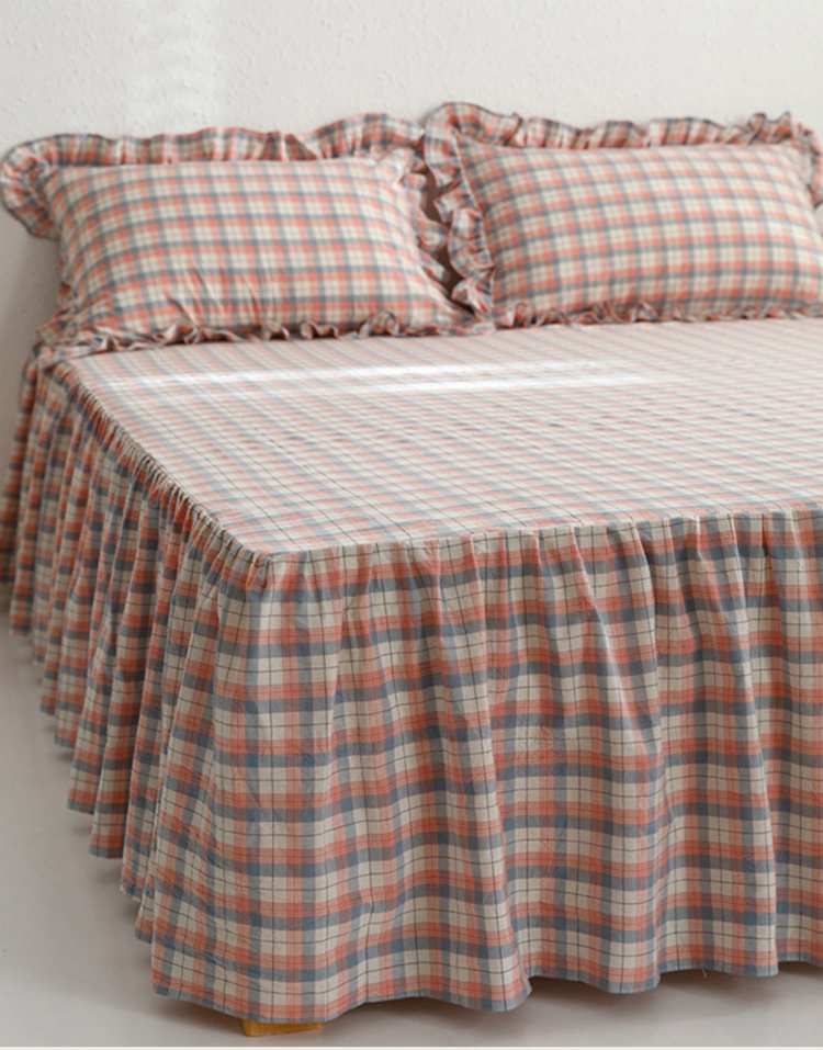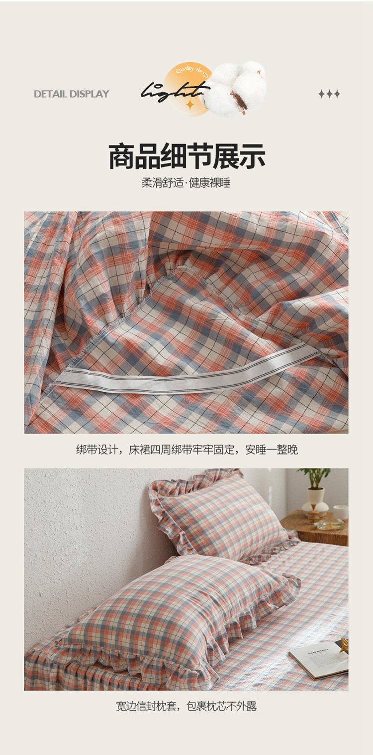 商品名称:忘忧草 2023新款全棉色织水洗棉床裙纯棉格子 春风曲-粉
