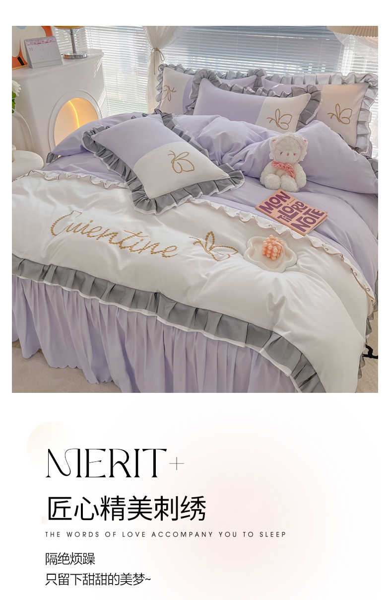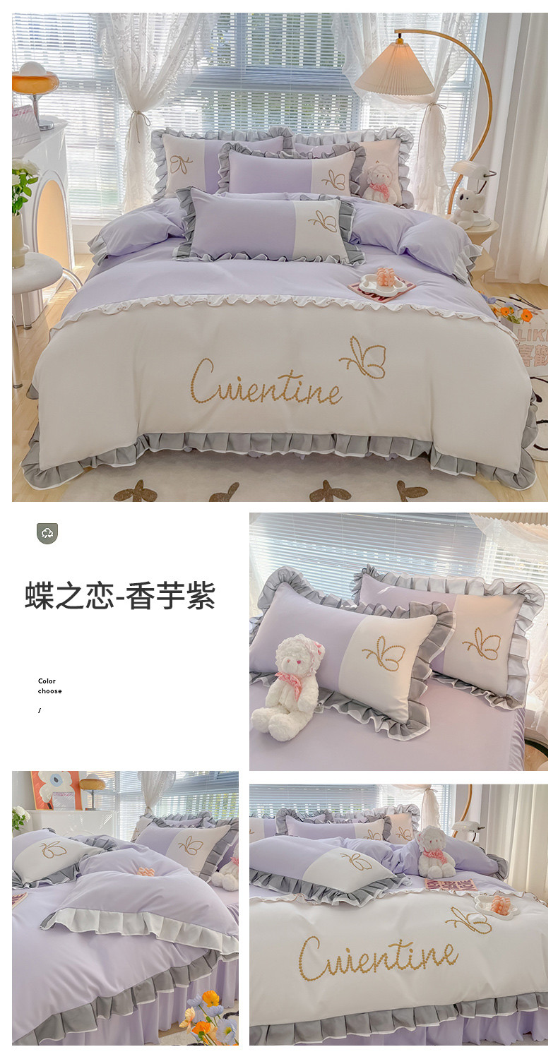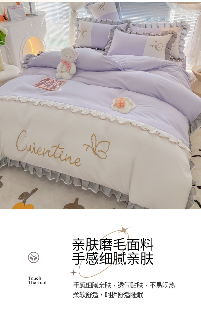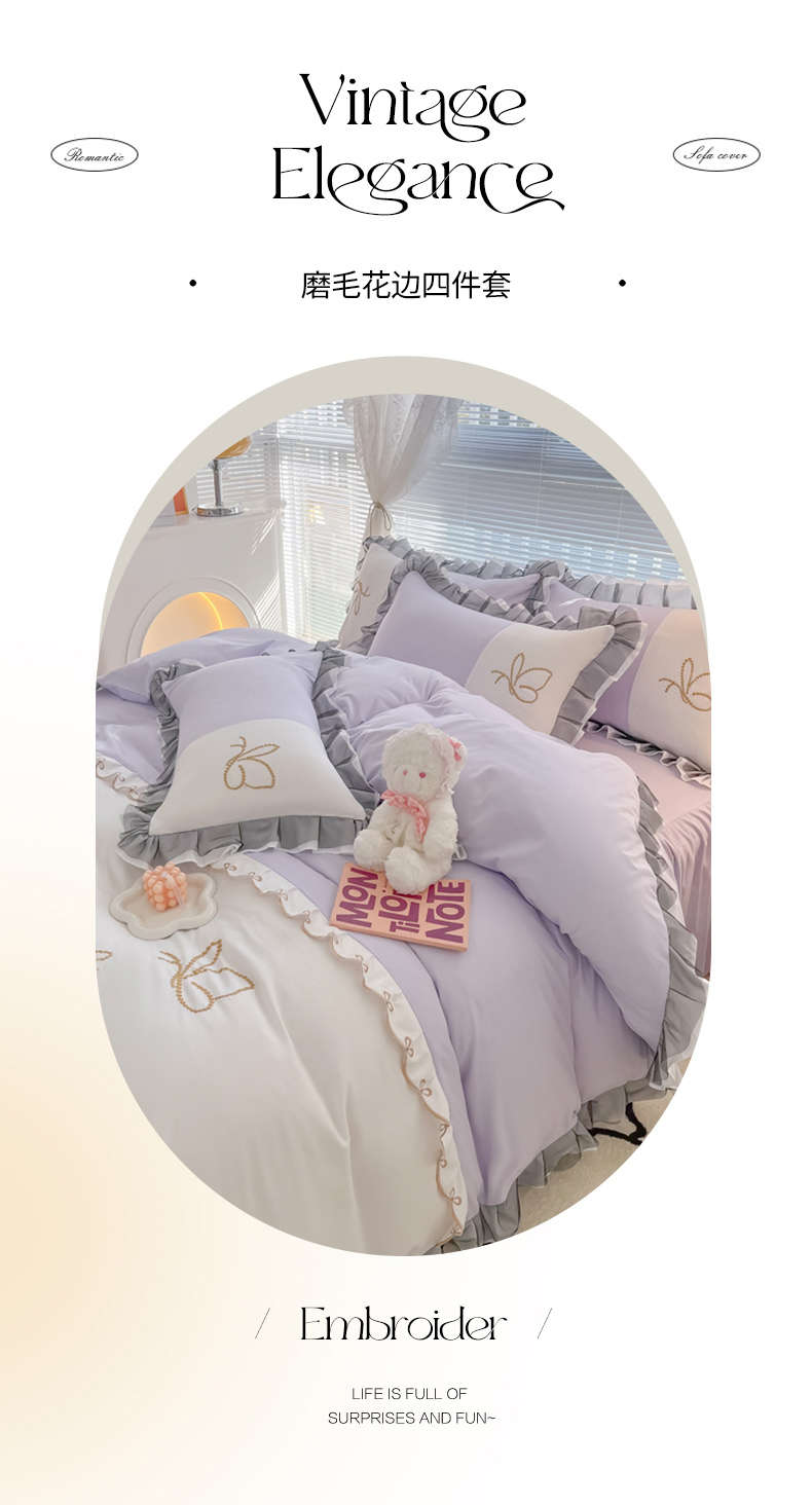 当前位置: 91家纺网 > 商品网购 > 床品套件 > 四件套 > 普通磨毛四件套 > 慕语2023新款蝶之恋刺绣磨毛花边四件套 蝶之恋-香芋紫