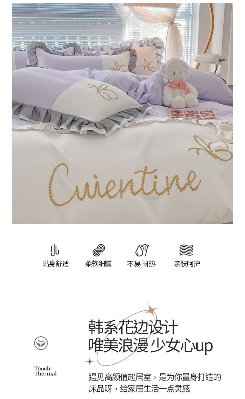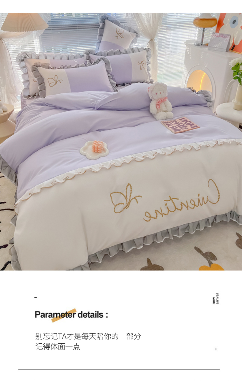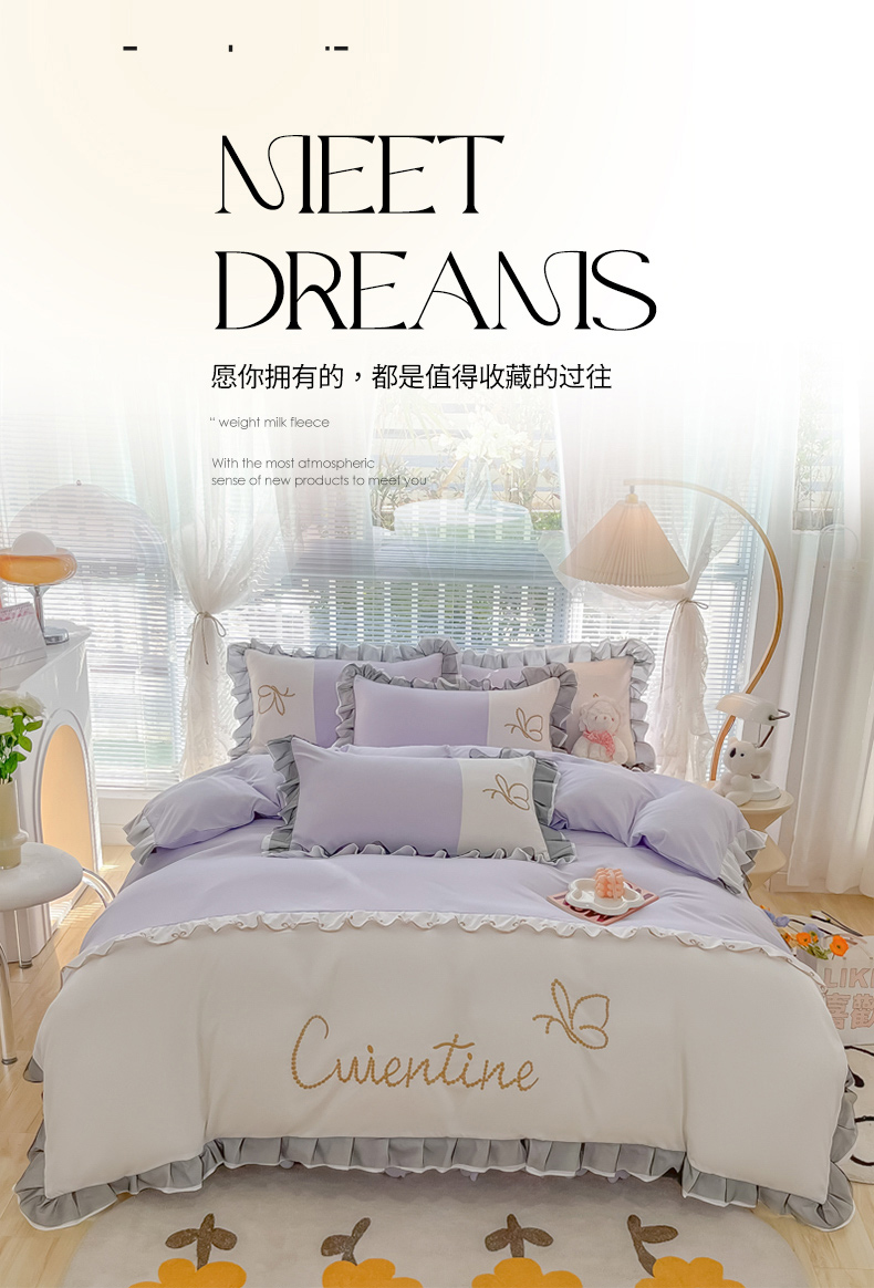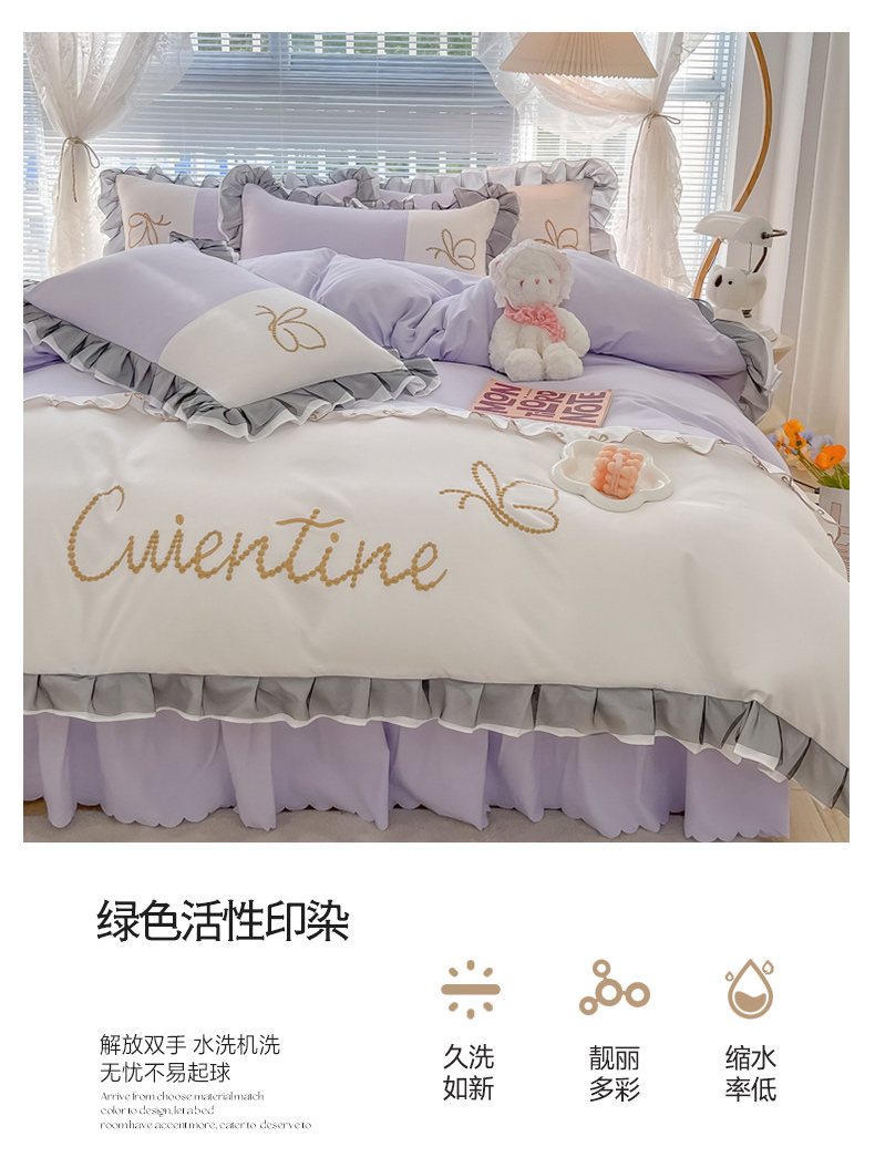 当前位置: 91家纺网 > 商品网购 > 床品套件 > 四件套 > 普通磨毛四件套 > 慕语2023新款蝶之恋刺绣磨毛花边四件套 蝶之恋-香芋紫