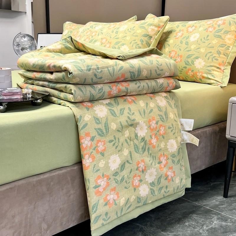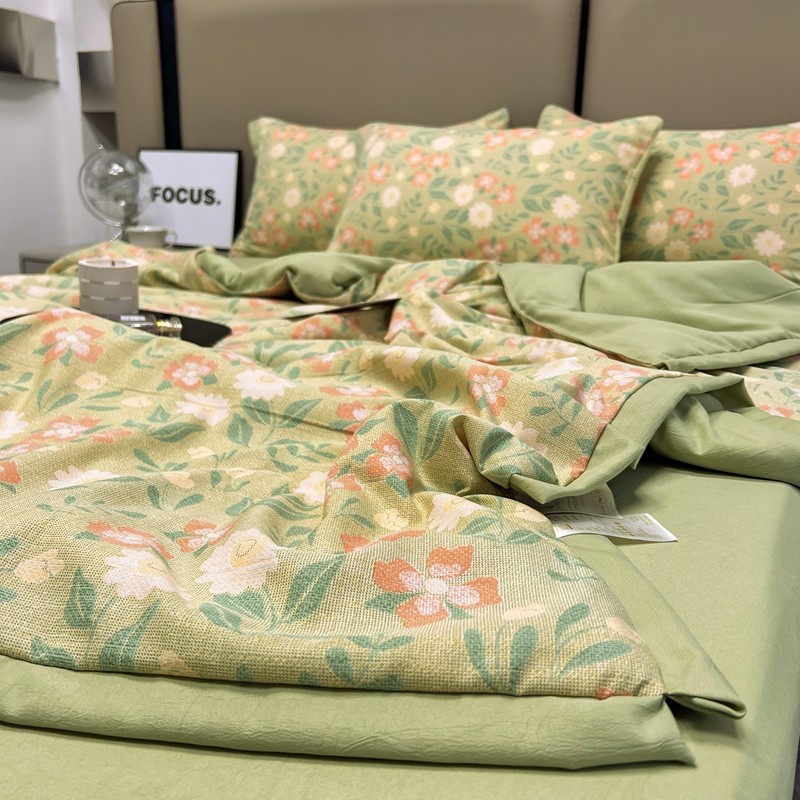 慕尚 2025新款水洗棉麻夏被四件套 花开半夏