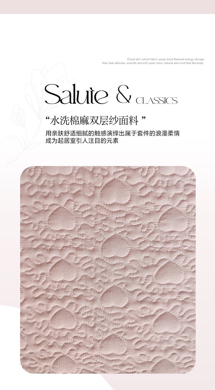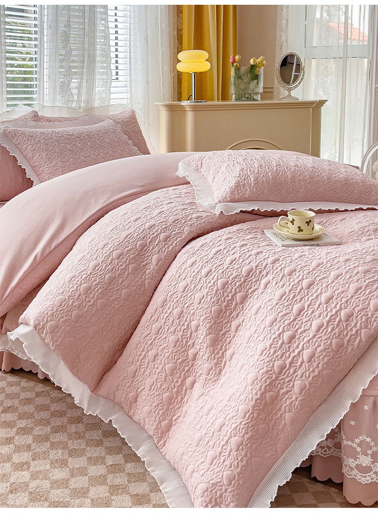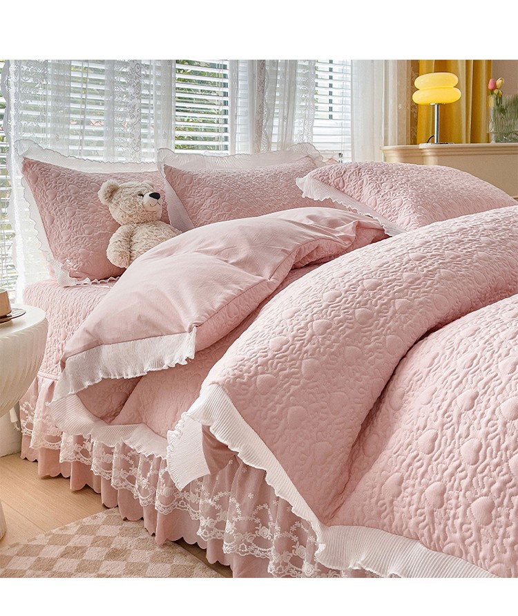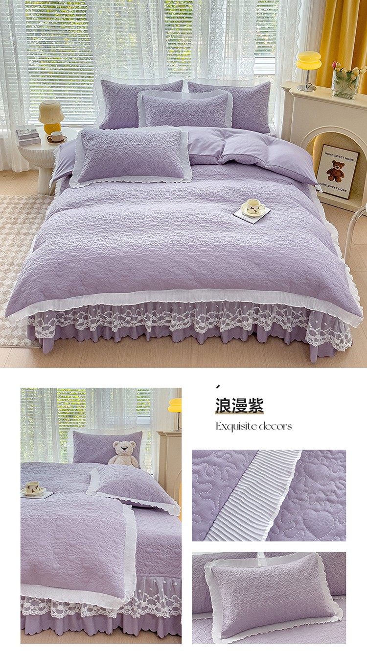 (总)2025水洗棉麻双层纱纯色多功能蕾丝床盖四件套 夹棉被套夏被两用套件直播爆款, 公主粉,抹茶绿,浪漫紫, 天空蓝, 冰川灰
